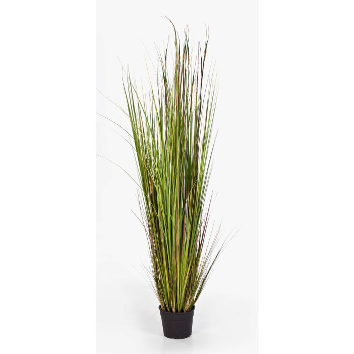 Cette graminée décorative SATRIO attirera tous les regards dans votre salon grâce à ses brins d'herbe verts avec des nervures jaunes et des touches de couleur brun-rouge. Le vulpin artificiel mesure au total environ 150 cm de haut.