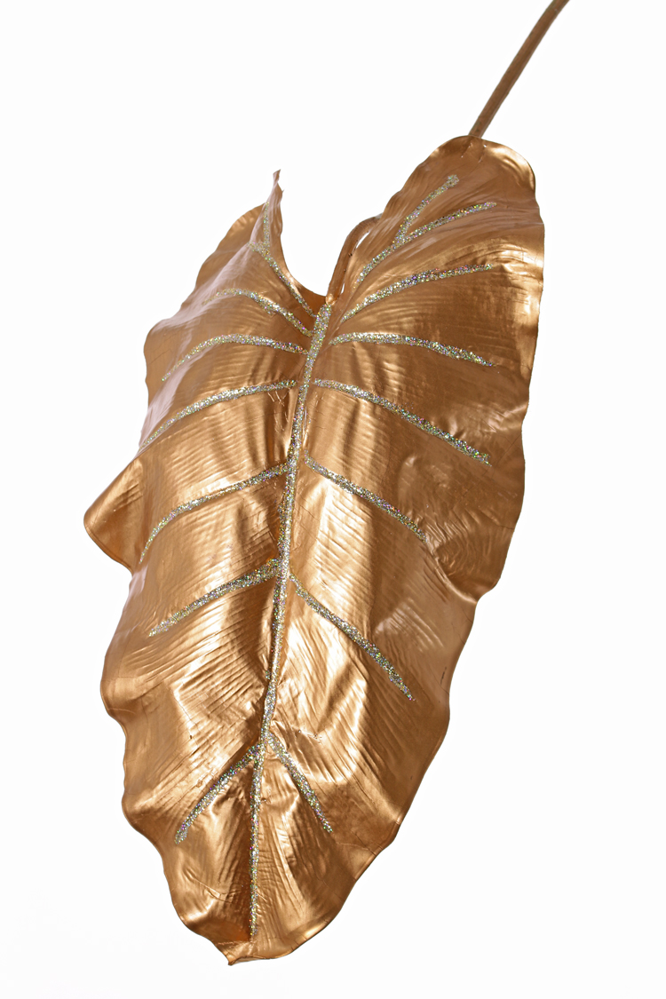 Feuille artificielle Alocasia Calidora BOBY, paillettes, or, 110cm