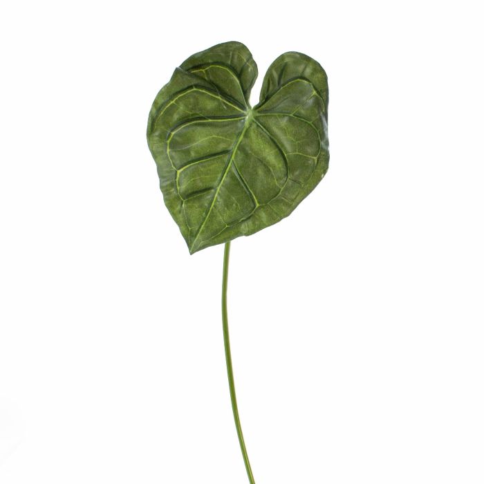 Feuille d’anthurium artificielle de couleur verte et mesurant au total environ 65 cm de long.