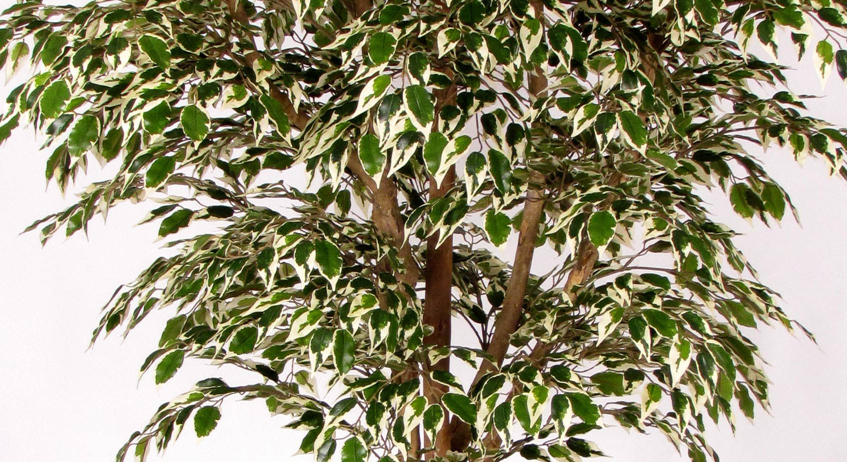 Ficus Benjamina artificiel LINETTE, troncs naturels, vert-blanc, 125cm - Made in Italy
