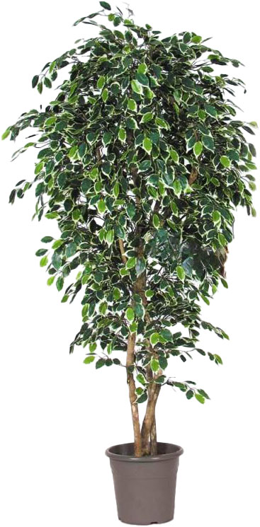 Ficus Benjamina artificiel LUDGARDIS, troncs naturels, vert-blanc, 150cm - Made in Italy