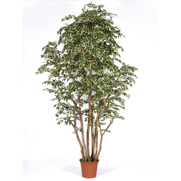 Ficus Benjamina artificiel MIMITIGO, troncs en bois véritable, vert-blanc, 175cm - Made in Italy