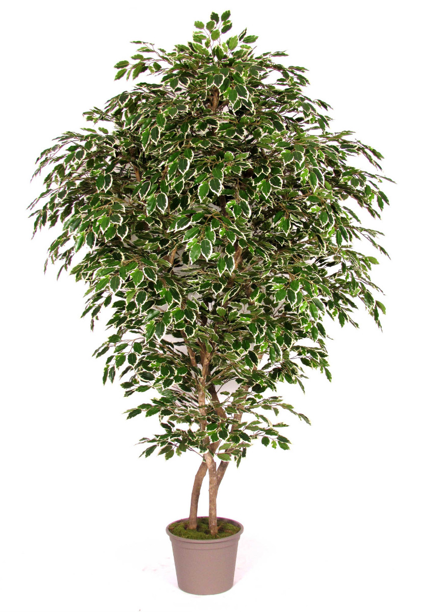 Ficus Benjamina artificiel NEVANTA, troncs en bois véritable, vert-blanc, 225cm - Made in Italy