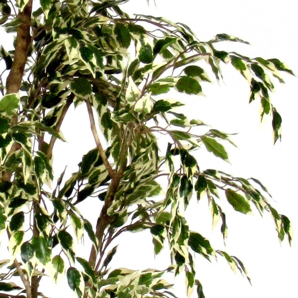 Ficus Benjamina décoratif LISEROSE, troncs en bois véritable, vert-blanc, 180cm - Made in Italy