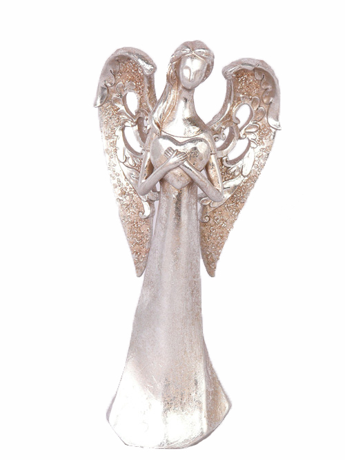 Figurine ange PINTA, cœur dans les mains, argent-cuivre, 30cm
