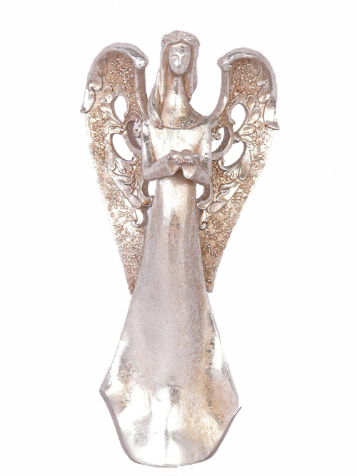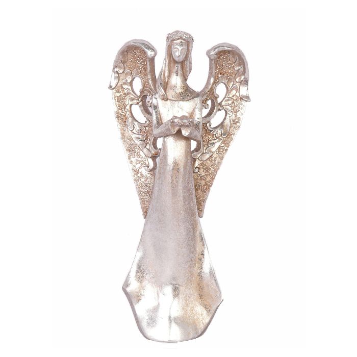 Figurine ange PINTA, fleur atteignant, argent-cuivre, 30cm