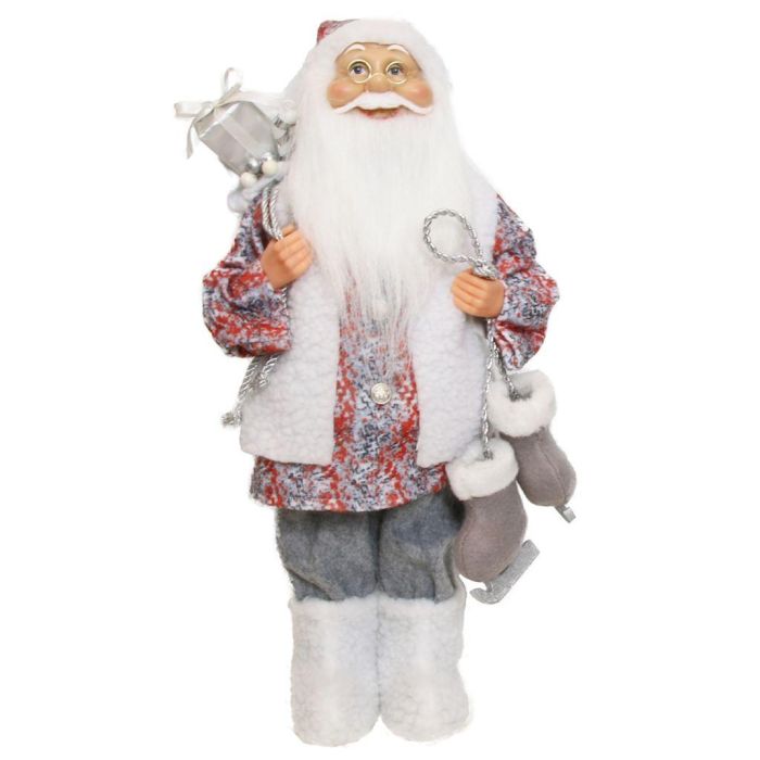 Figurine de Père Noël ABENZIO, patins à glace, sac cadeau, blanc-gris-rouge, 22x14x45cm