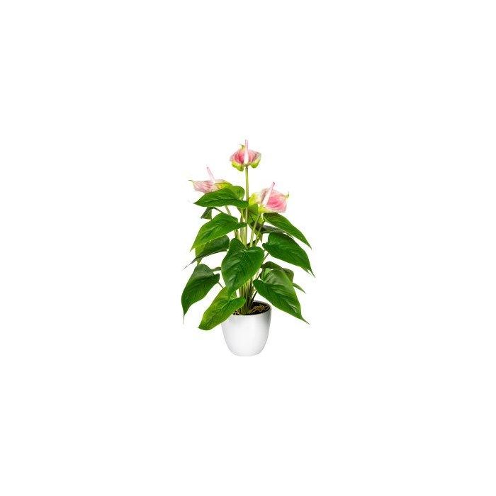 Fleur artificielle Anthurium PLOVIR en pot décoratif, racines, rose, 40cm