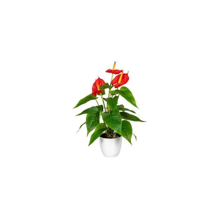 Fleur artificielle Anthurium PLOVIR en pot décoratif, racines, rouge, 40cm