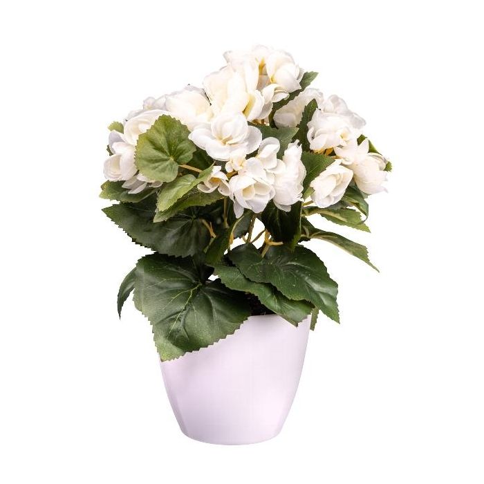 Fleur artificielle Bégonia SYLINA, pot décoratif blanc, crème, 30cm