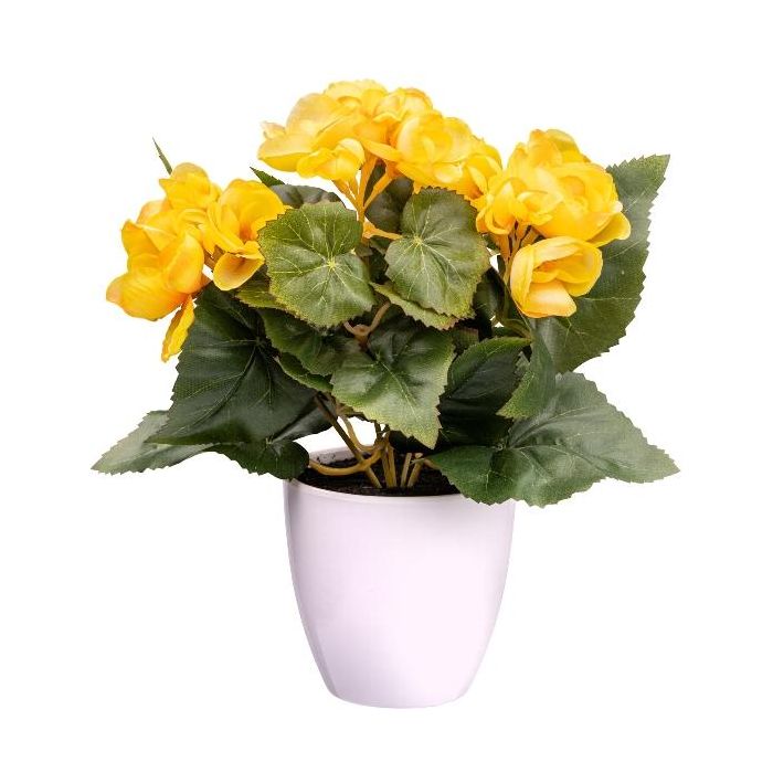 Fleur artificielle Bégonia SYLINA, pot décoratif blanc, jaune, 25cm