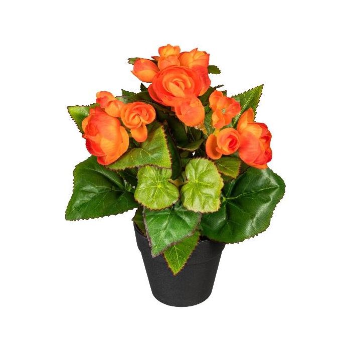 Fleur artificielle Bégonia SYLINA, pot décoratif noir, orange, 25cm