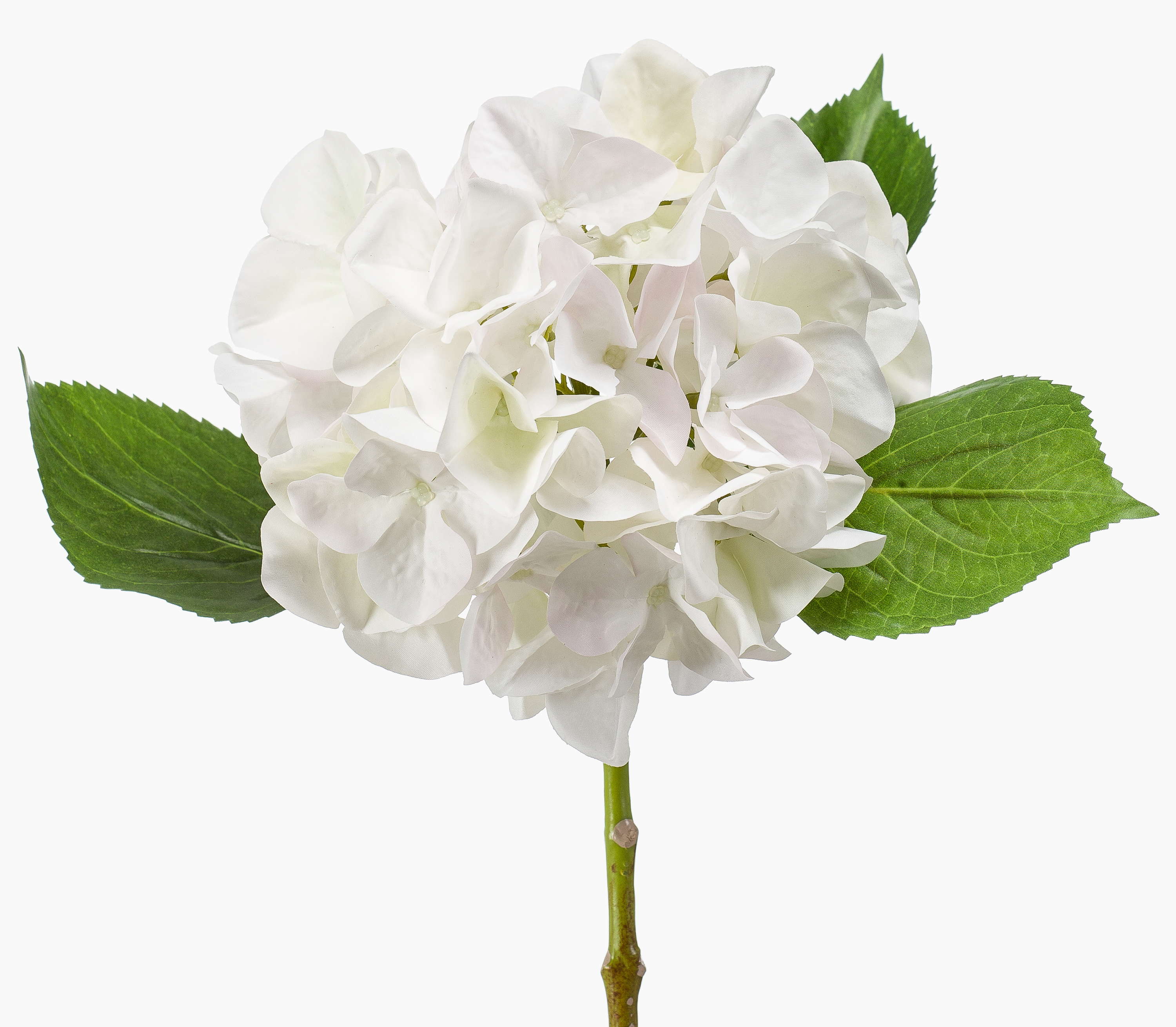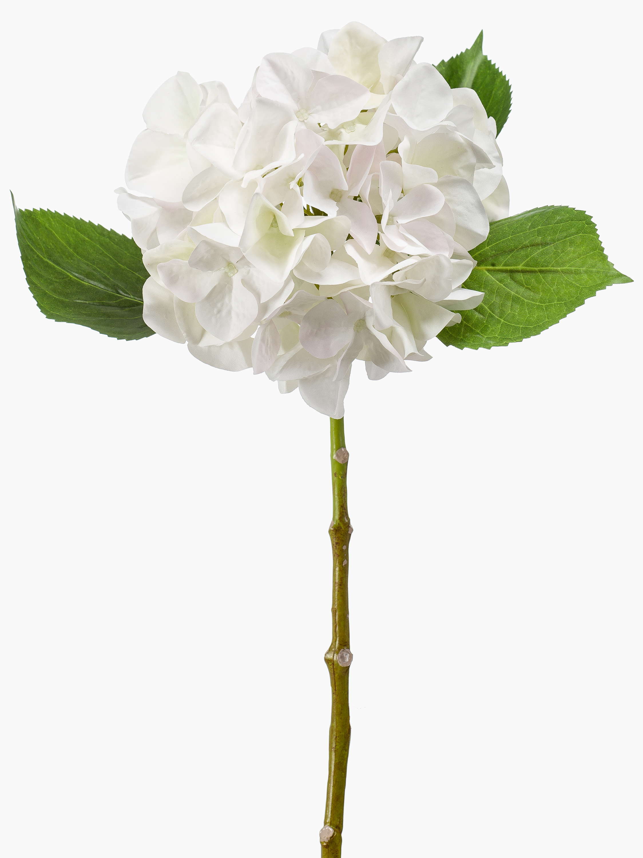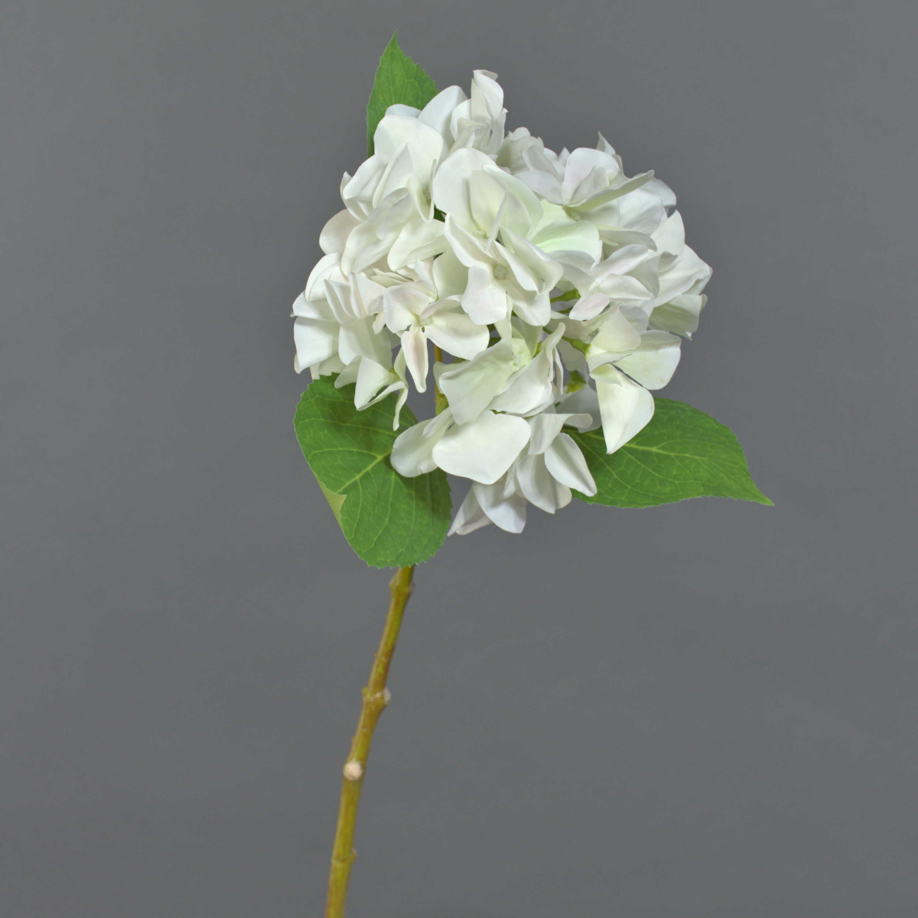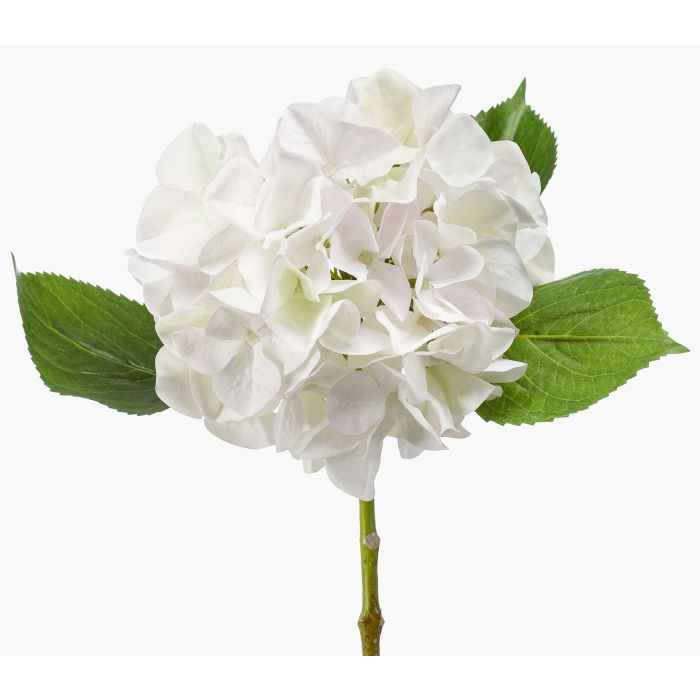L'hortensia artificiel AMARILDO de couleur blanche est fixé sur une tige et a une longueur d'environ 45 cm.