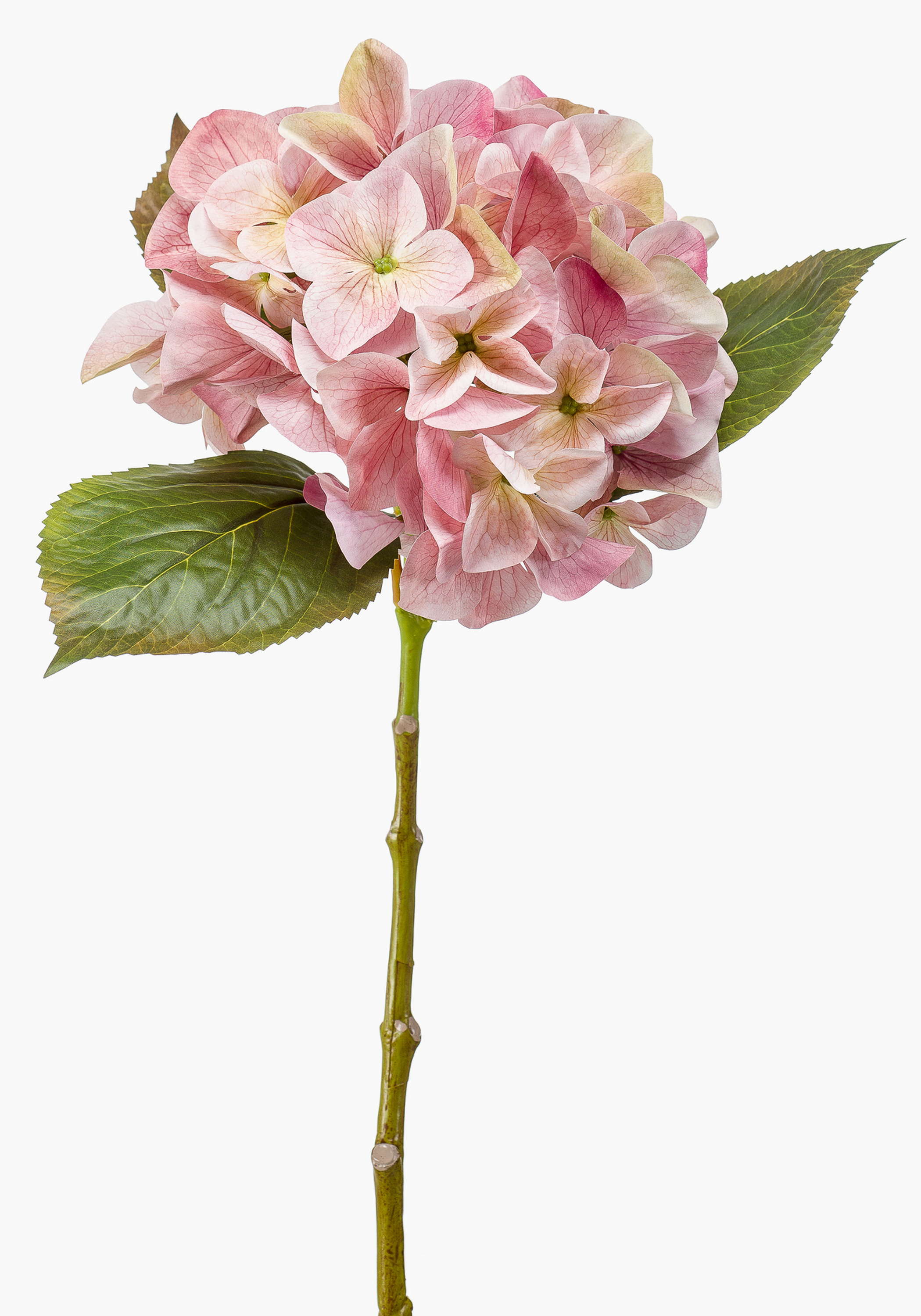 L'hortensia artificiel AMARILDO de couleur rose est fixé sur une tige et a une longueur d'environ 45 cm.