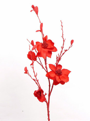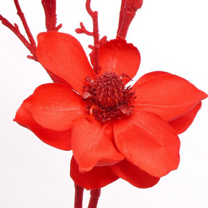 Fleur artificielle magnolia SANDY, paillettes, rouge, 115cm
