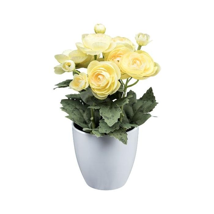 Fleur artificielle Renoncule SLIVOR en cache-pot en mélamine, jaune clair, 20cm