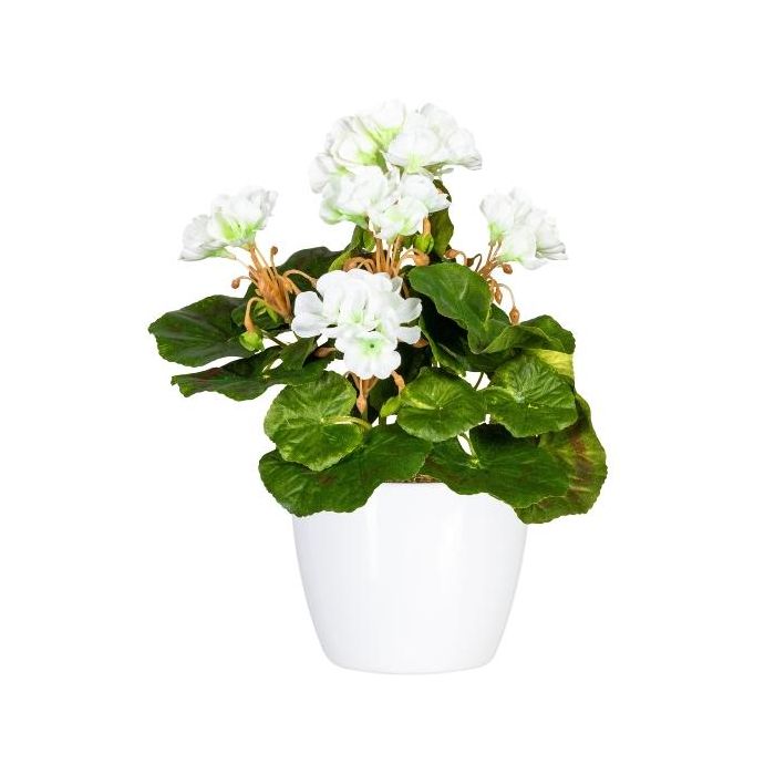 Fleur décorative Géranium CRONVEL, pot en céramique, crossdoor, blanc, 25cm