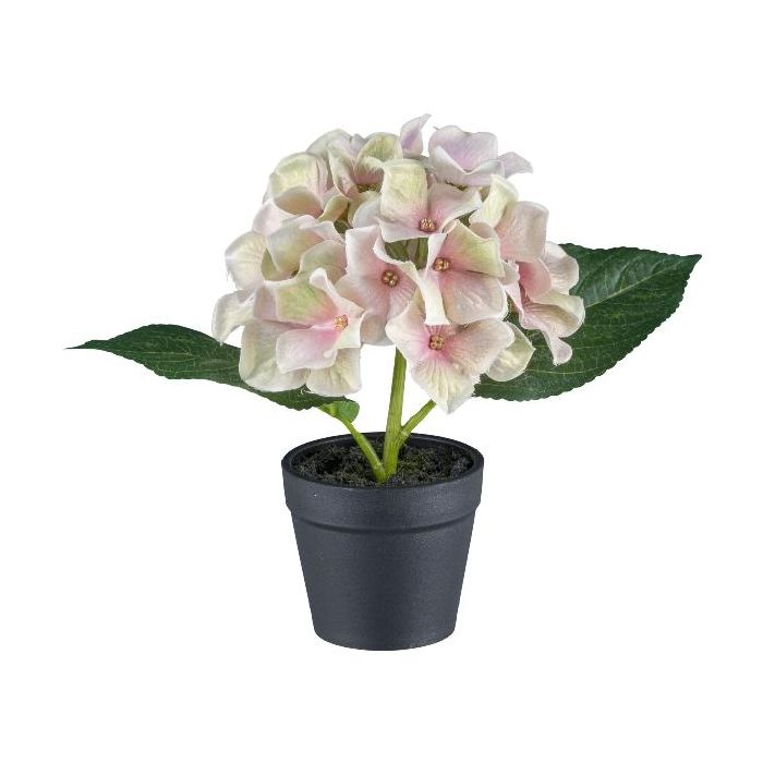Fleur décorative Hortensia LENDYN en pot décoratif, rose pastel, 20cm