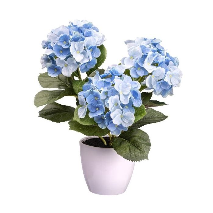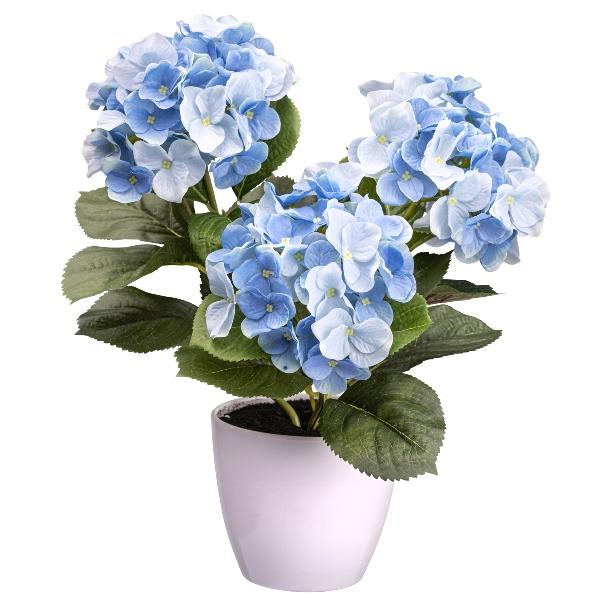 Fleur décorative Hortensia SLORFIN en pot décoratif blanc, bleu, 30cm