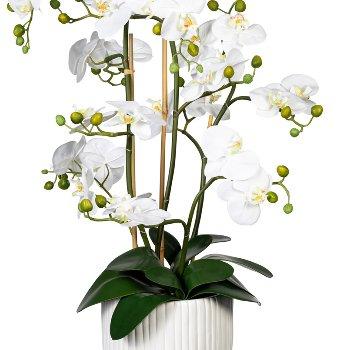 Fleur décorative Orchidée Phalaenopsis VELTORI, vase en céramique, blanc, 110cm