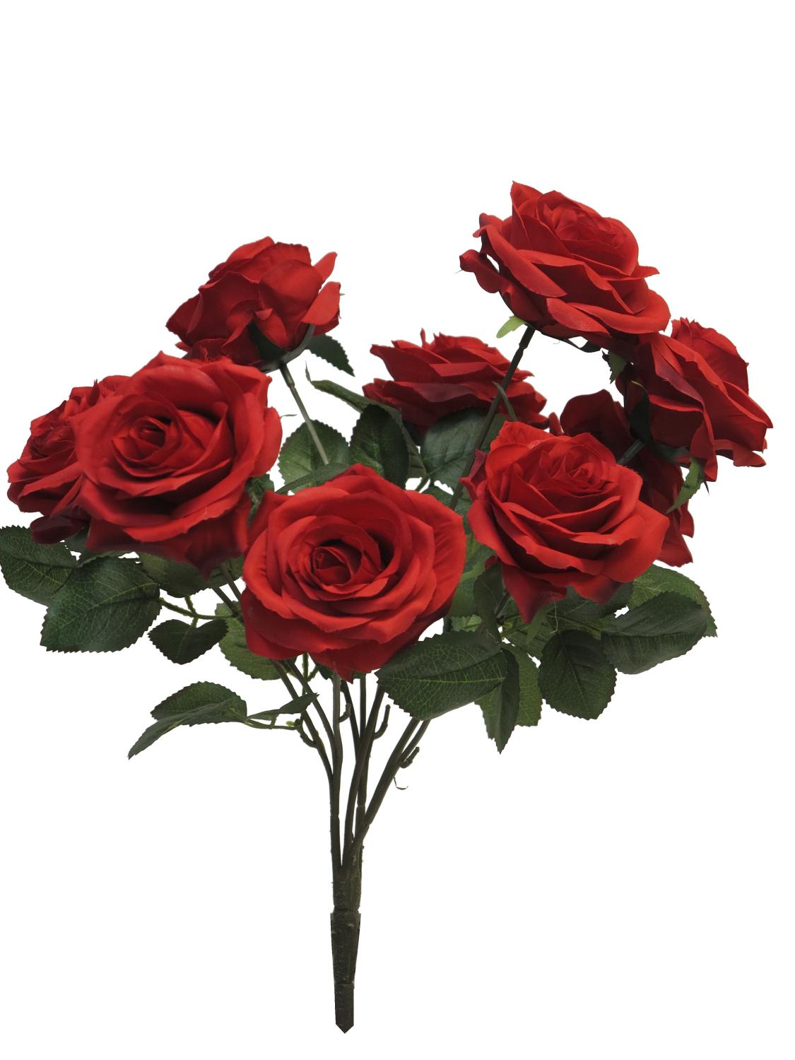 Fleur décorative rosier KAILIN sur piquet, rouge, 40cm