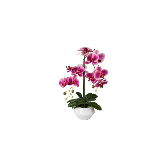Fleur en plastique Orchidée Phalaenopsis KASDA, pot en céramique, racines, rose fuchsia, 50cm