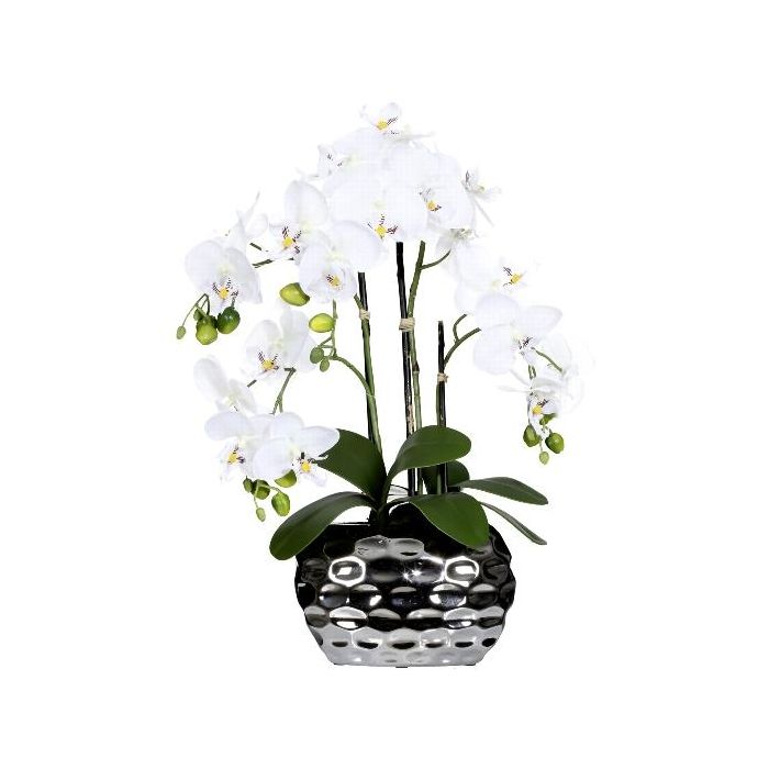 Fleur en plastique Orchidée Phalaenopsis SINKA en pot décoratif argenté, blanc, 55cm