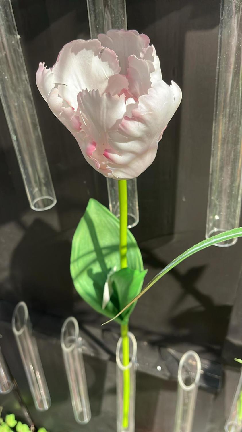 Fleur en plastique Tulipe perroquet PETSCHORA, blanc-rose, 65cm