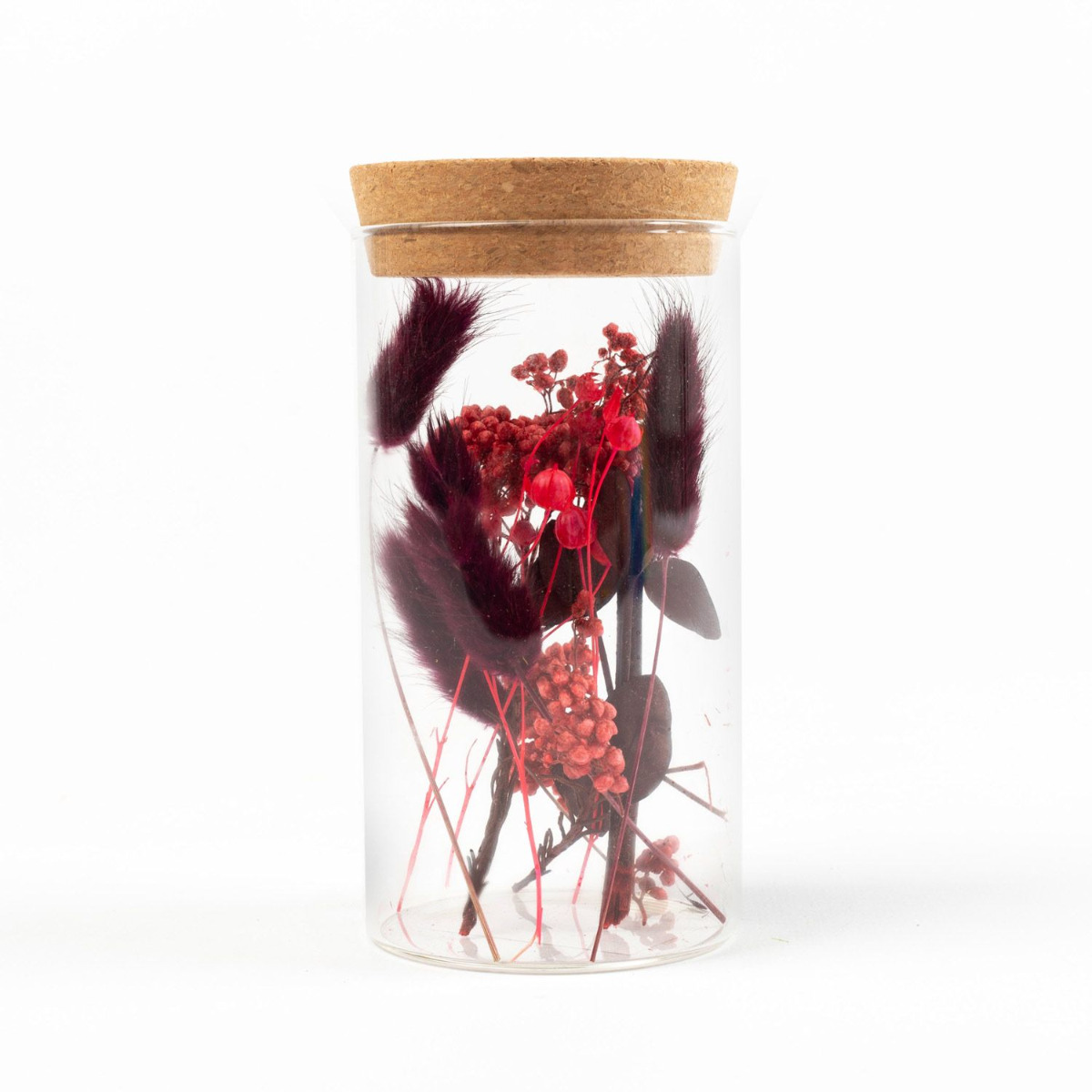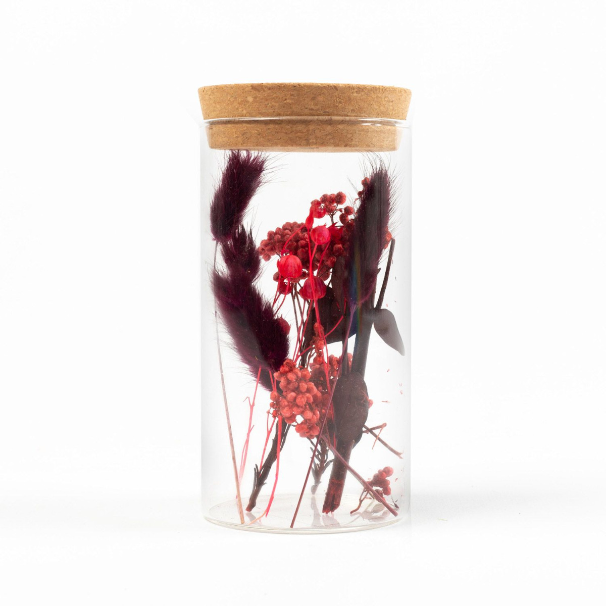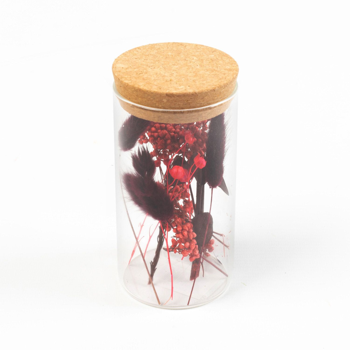 Fleurs séchées en pot en verre ROMIRO, rouge, 12cm, Ø6,5cm