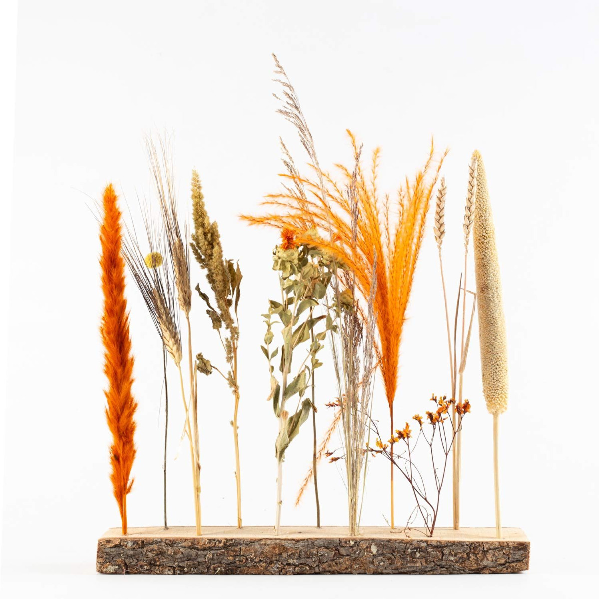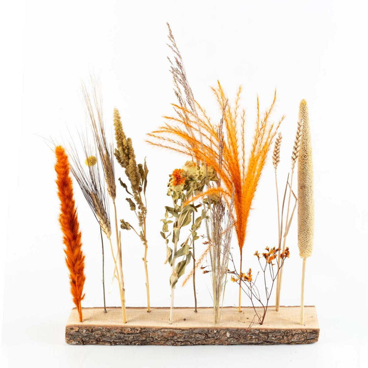 Fleurs séchées sur plaque de bois MICHAEL, orange-vert, 40x7x35cm