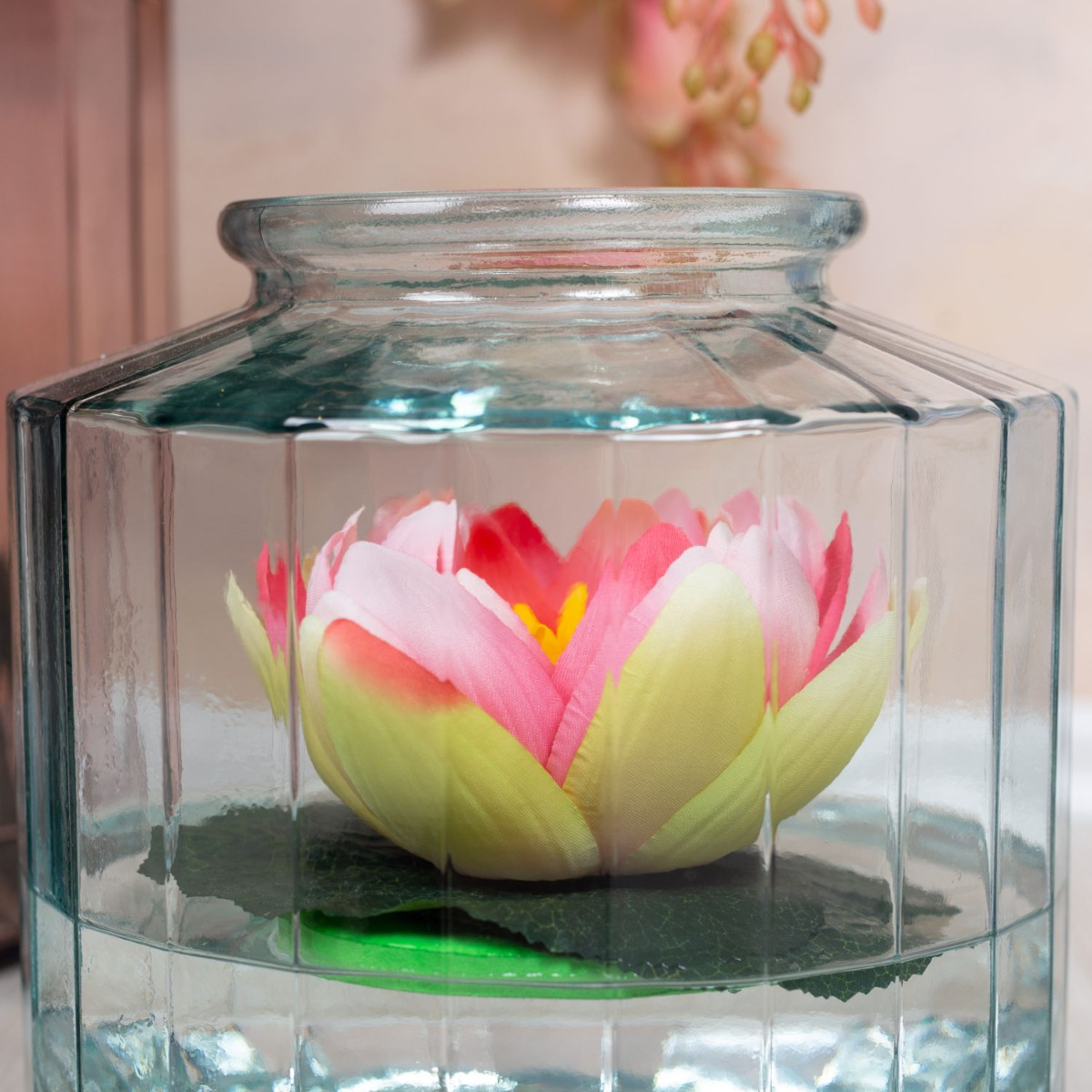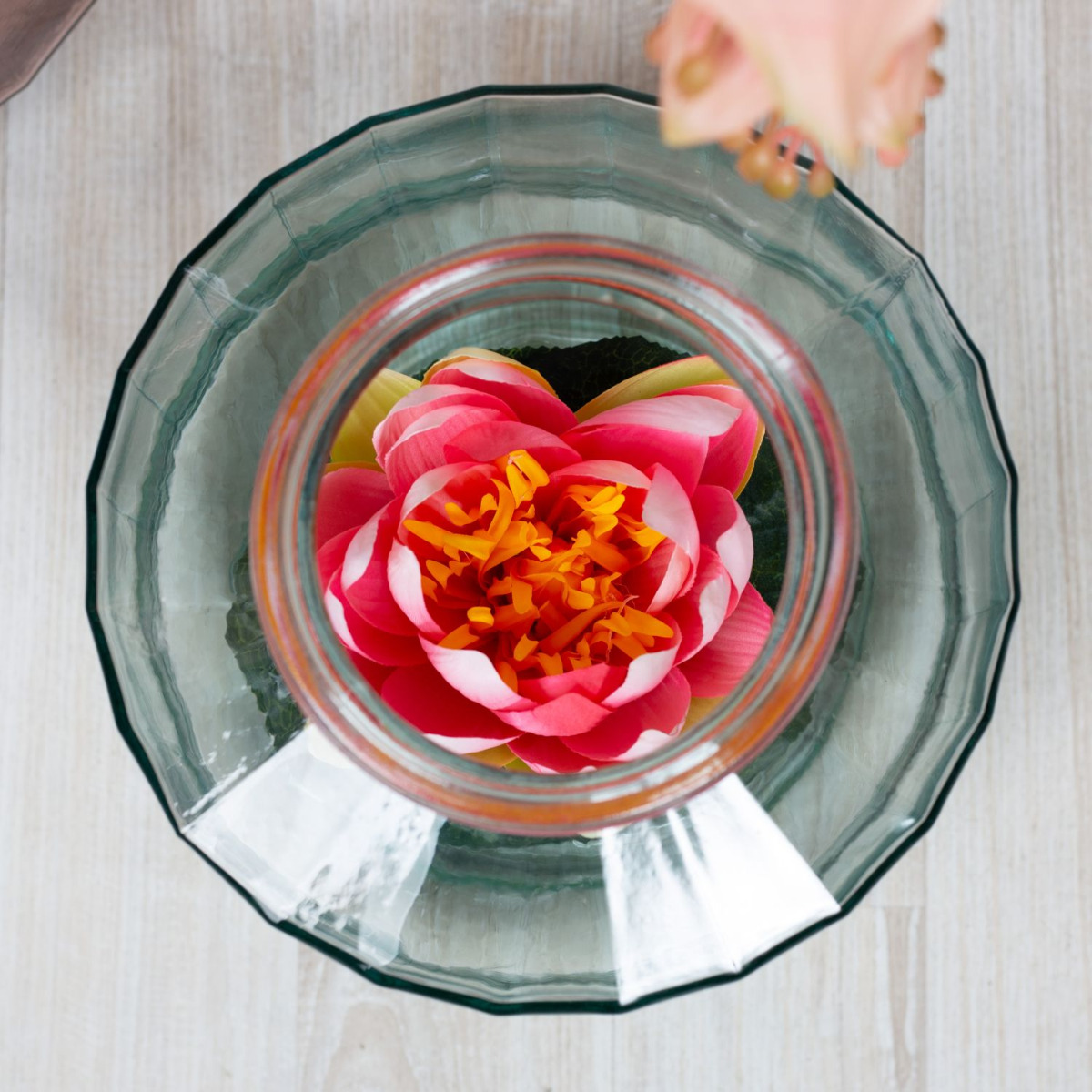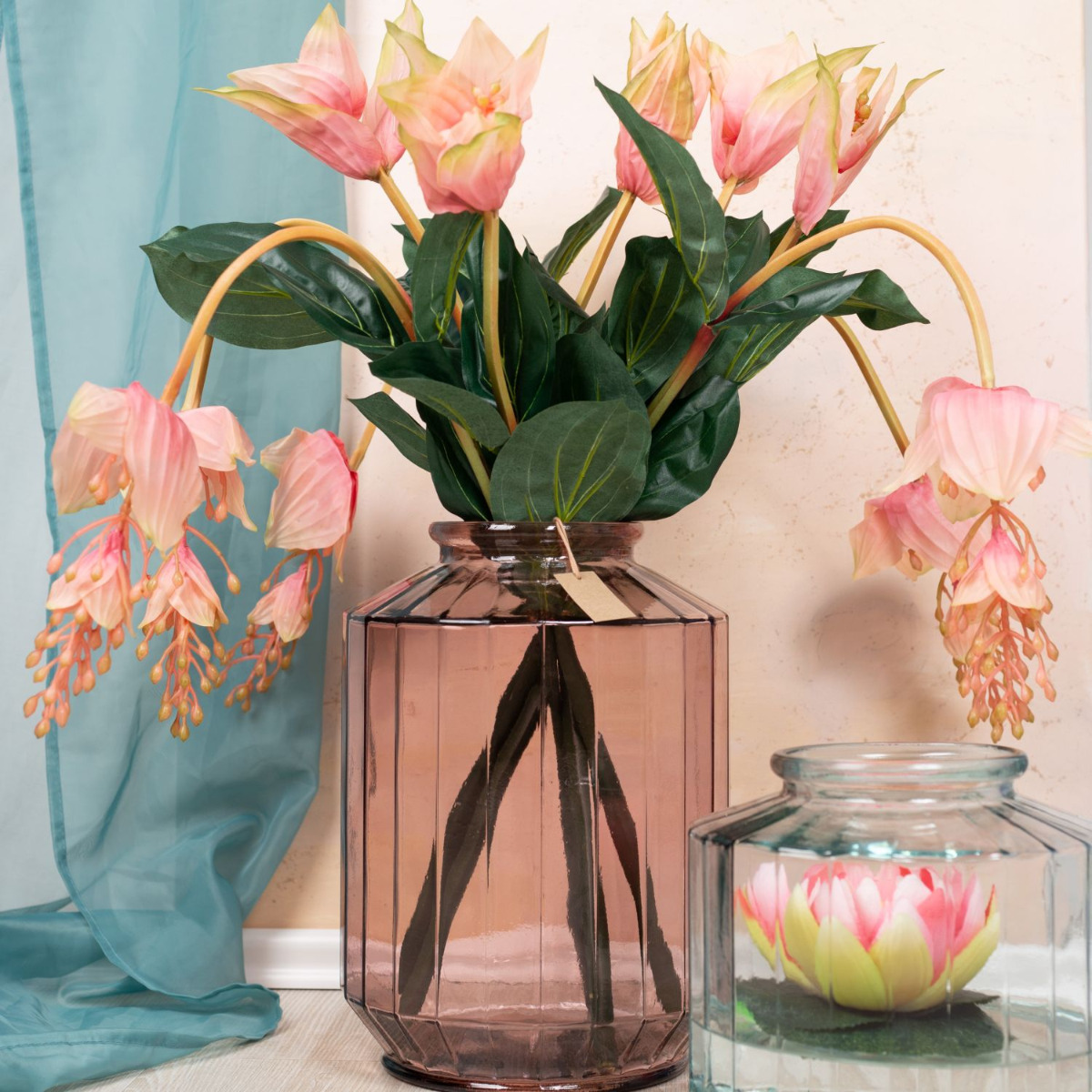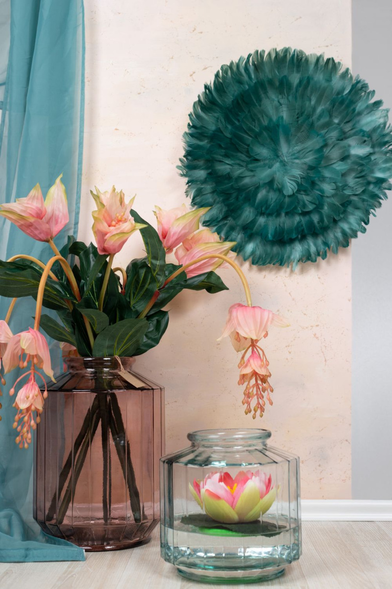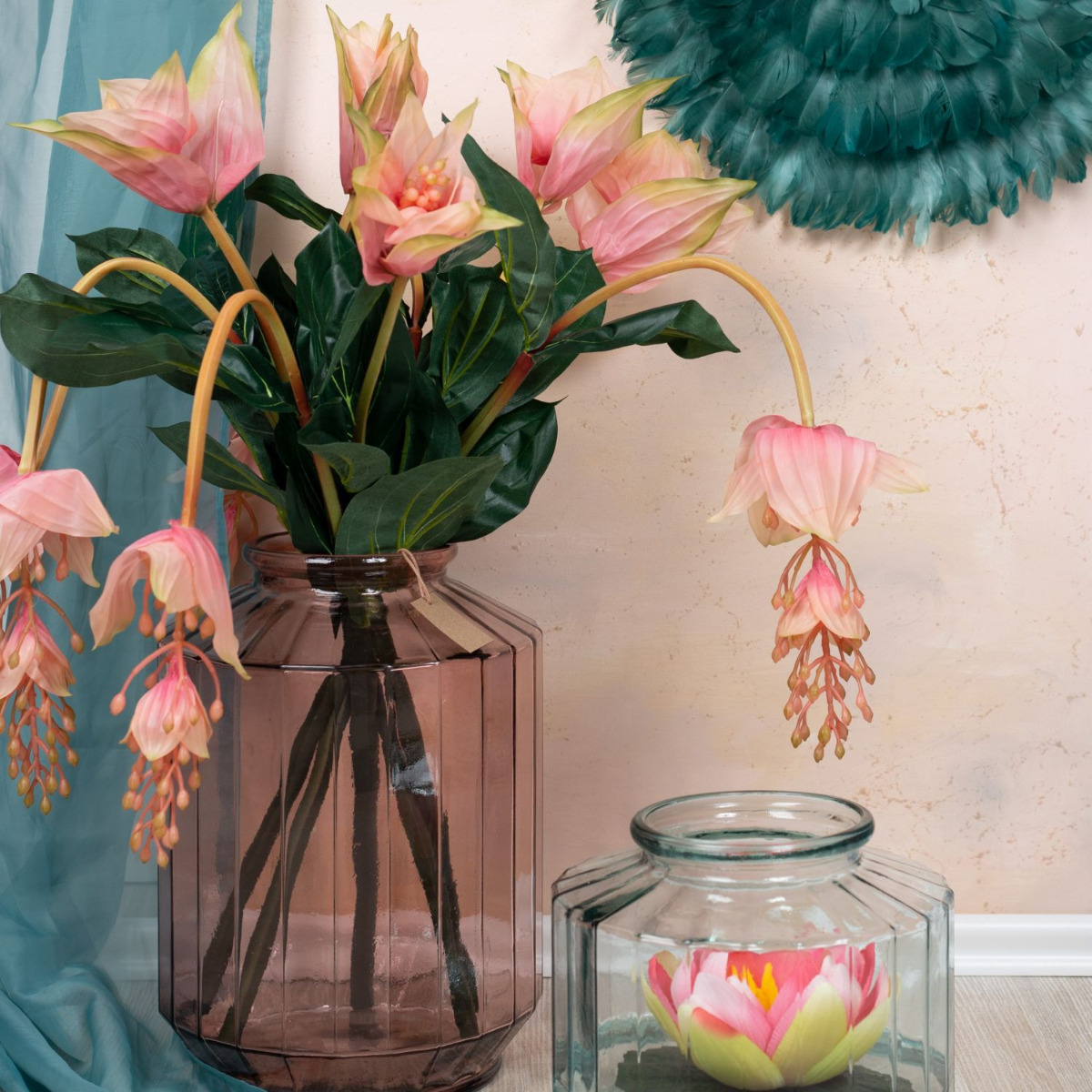 Vous souhaitez une plante qui sera très belle à regarder dans votre salon, mais vous n'êtes pas à la hauteur de son entretien coûteux ? - Cela ne peut pas vous arriver avec notre Medinilla artificiel fidèle à la nature. Décoré dans un vase tout aussi beau en verre épais, la fleur attirera tous les regards de vos invités. En combinaison avec le nénuphar décoratif flottant dans un verre de la même série, vous obtiendrez une jolie pièce maîtresse dans votre salon. Vous aussi, vous ameriez donner un nouvel éclat à votre intérieur ? Shop the Look!