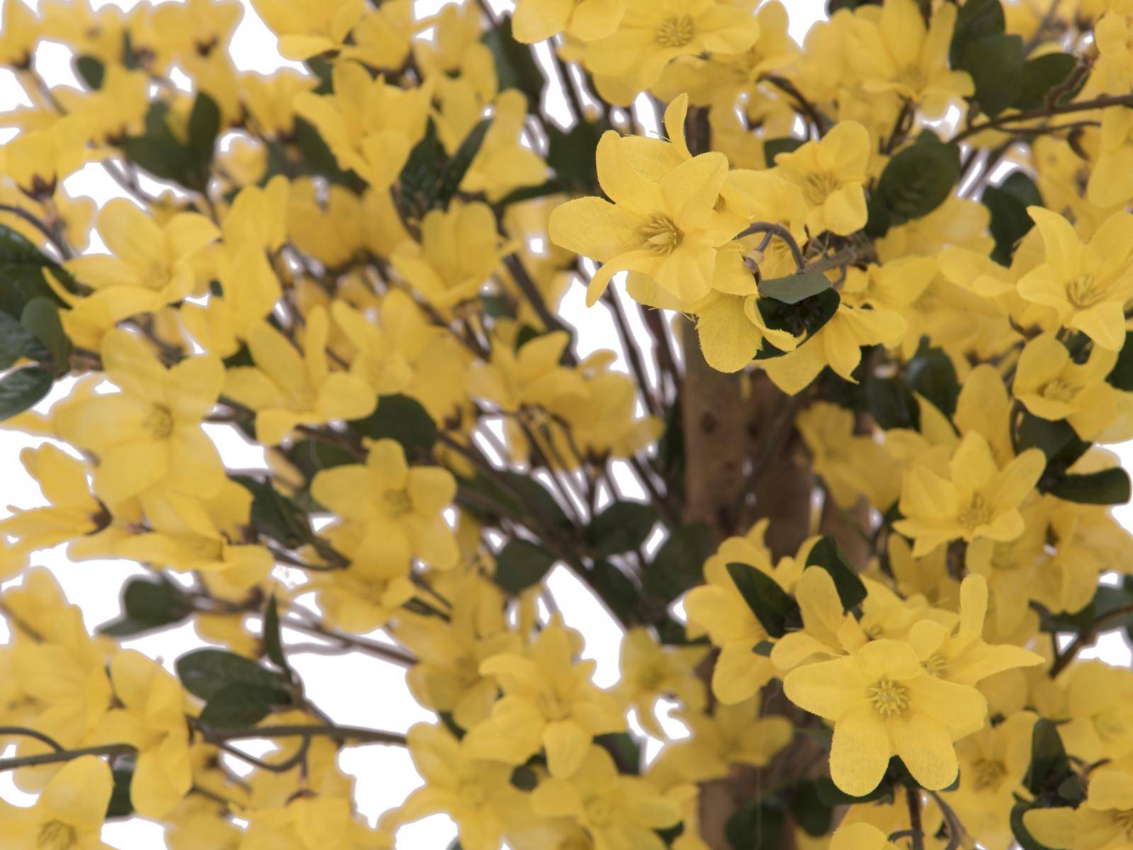 Forsythia artificiel MISAKI, vrais troncs, fleurs, jaune, 150cm