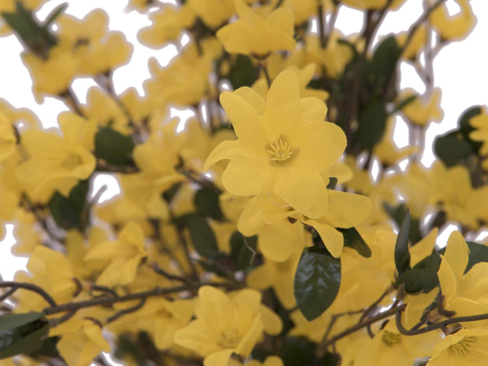 Le joli forsythia MISAKI remplira vos chambres avec des fleurs jaunes tropicales. Cet arbre artificiel vous impressionnera par ses troncs naturels qui sont entourés de lianes. Le forsythia mesure au total environ 150 cm de haut.