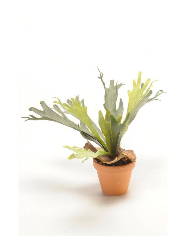 Fougère corn de cerf artificielle BAROJA en pot en terre cuite, vert, 50cm