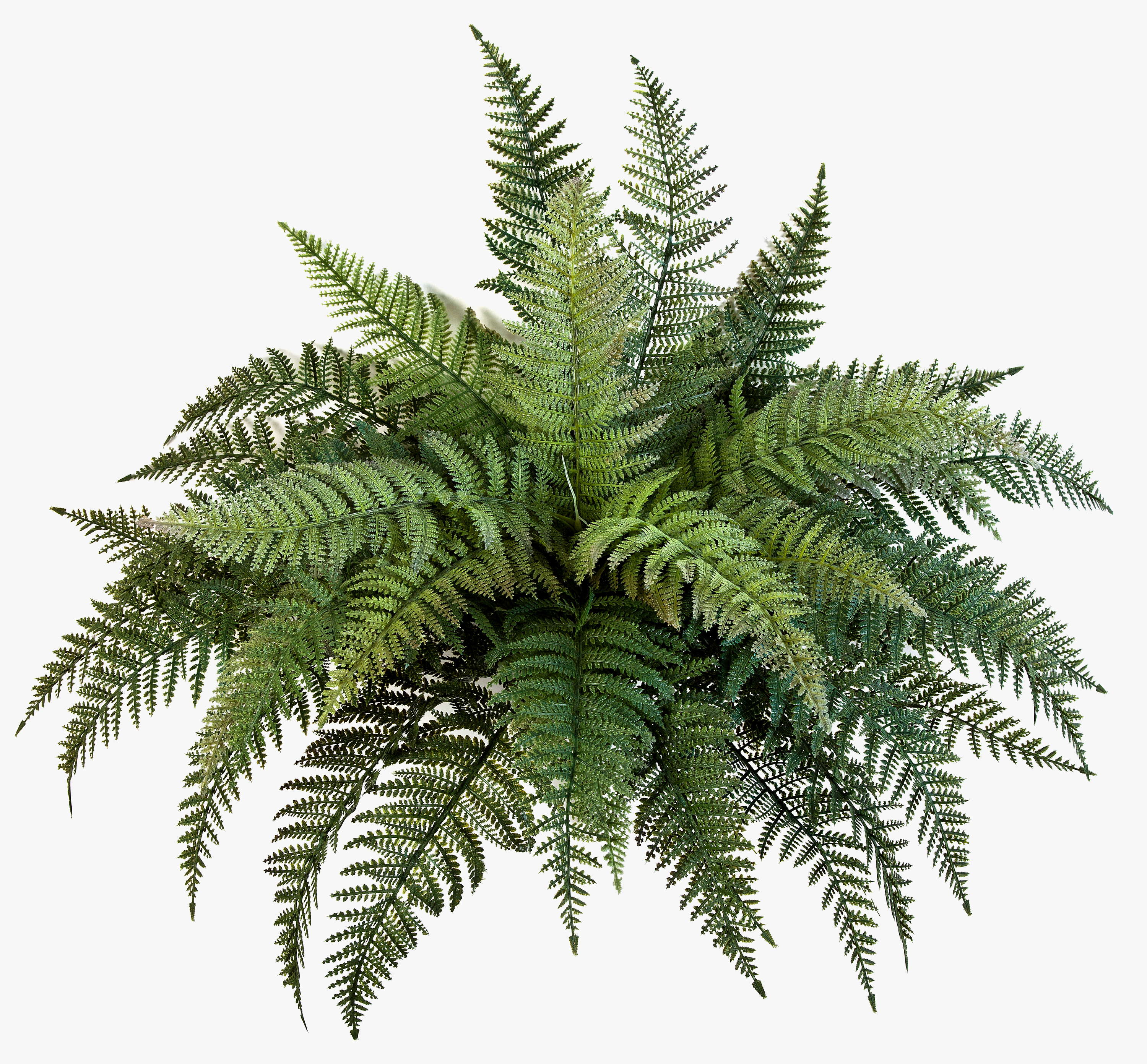 Fausse Fougère constituée de 35 feuilles vertes. Cette fougère royale mesure env. 50 cm de haut et 65 cm de diamètre.