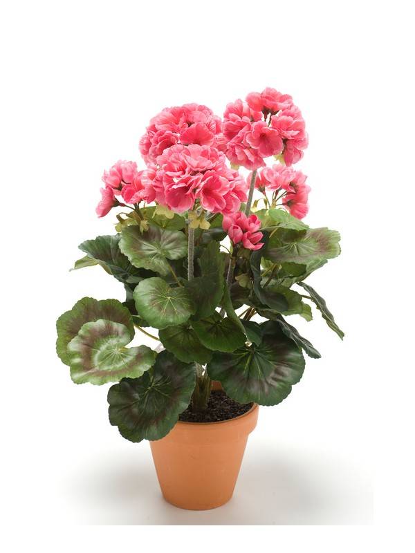 Géranium artificiel MASALIA en pot en terre cuite, rose, 35cm