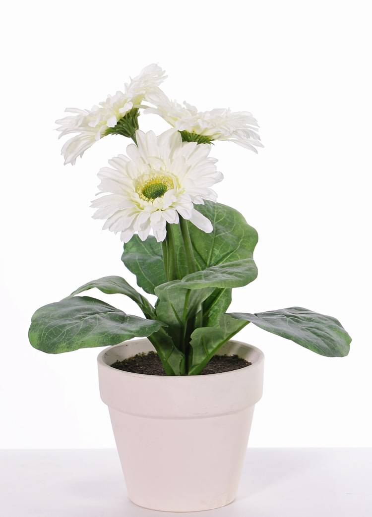 Gerbera artificiel SIMONE en pot décoratif, blanc, 30cm, Ø9,5cm