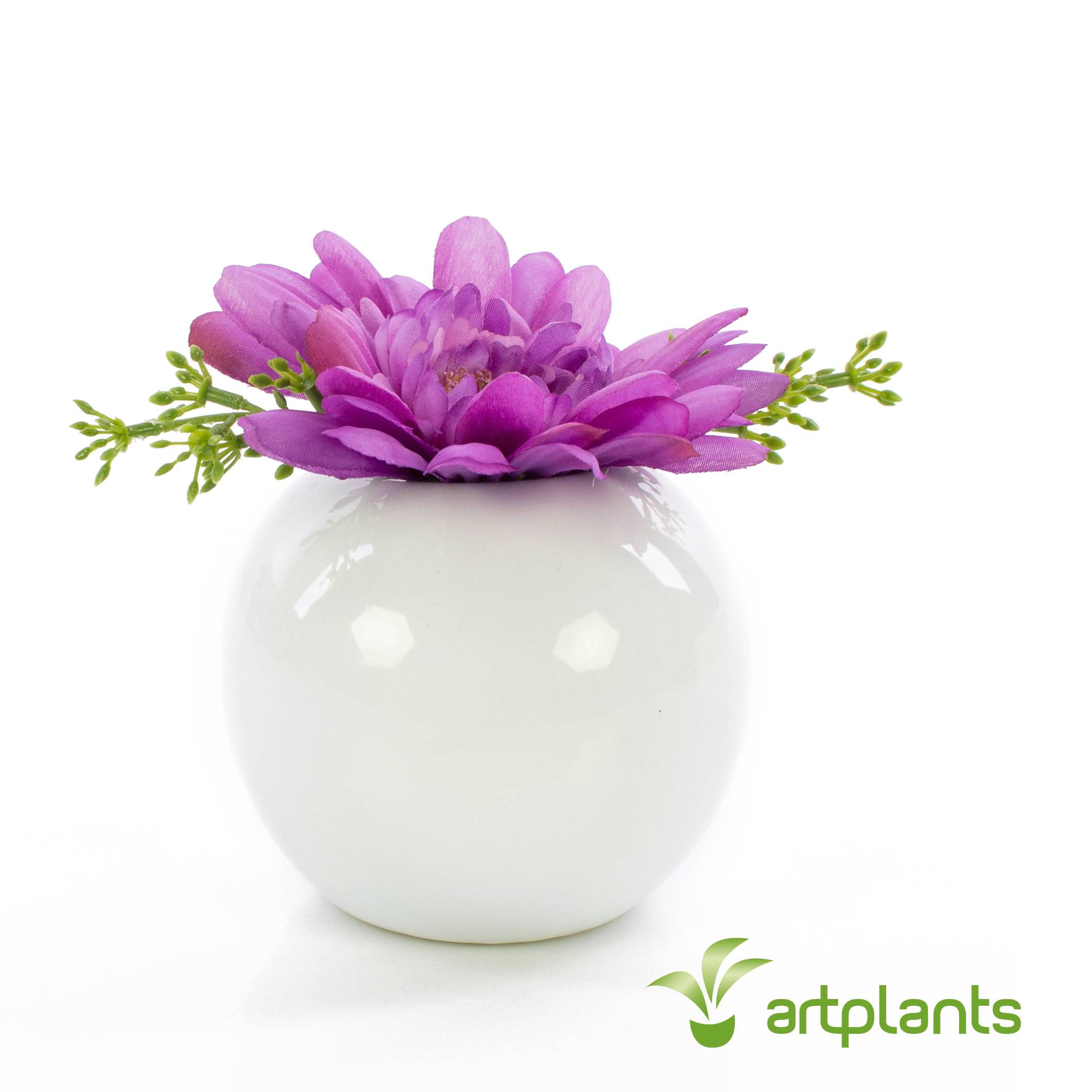 Ce joli arrangement artificiel IMINA se compose de gerberas et de branches vertes et mesure au total environ 12 cm de haut.