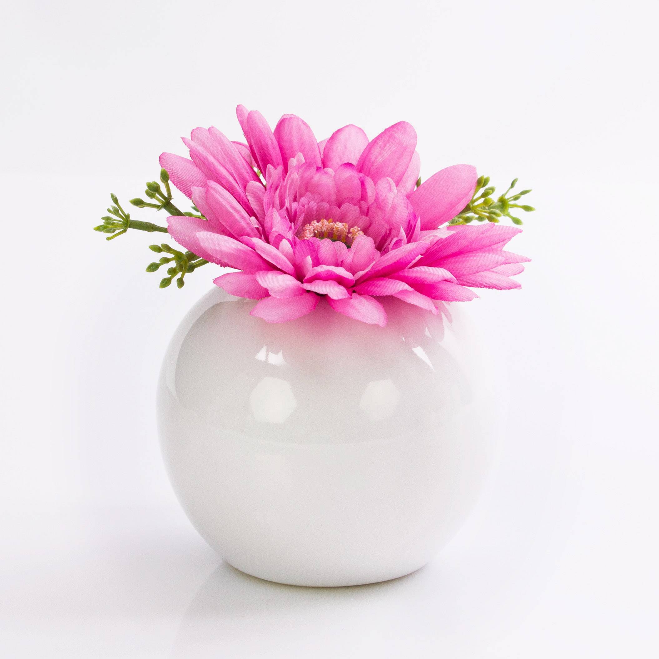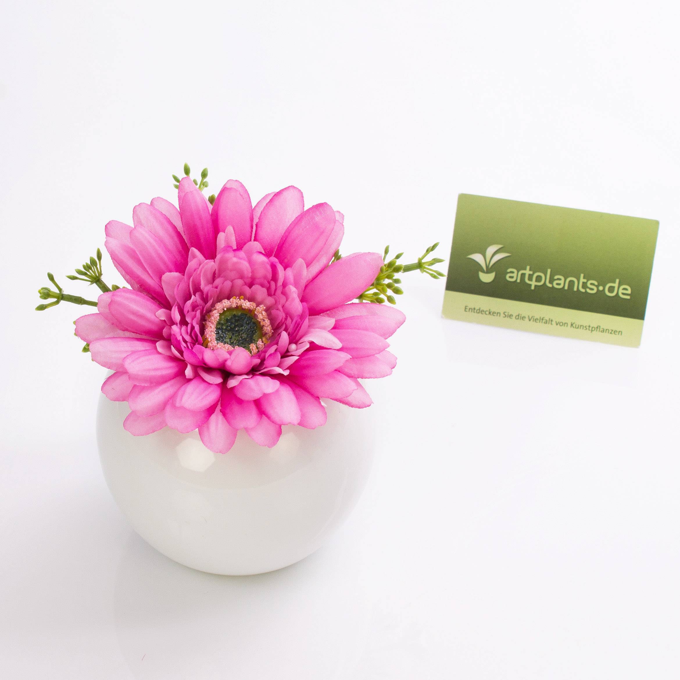 Ce joli arrangement artificiel IMINA se compose de gerberas et de branches vertes et mesure au total environ 12 cm de haut.