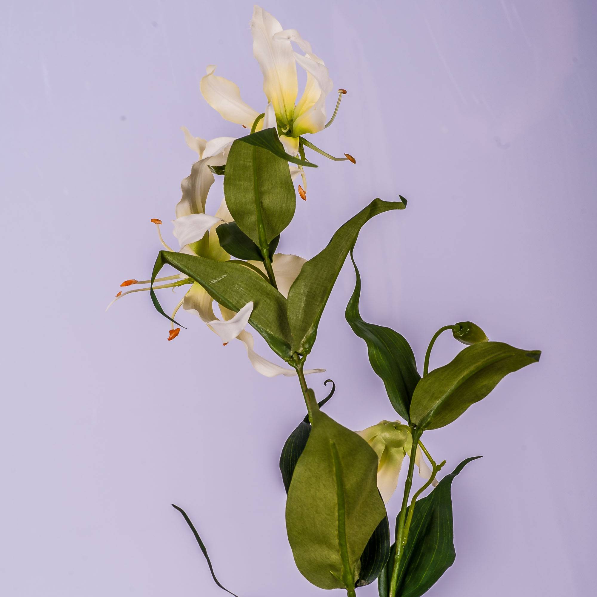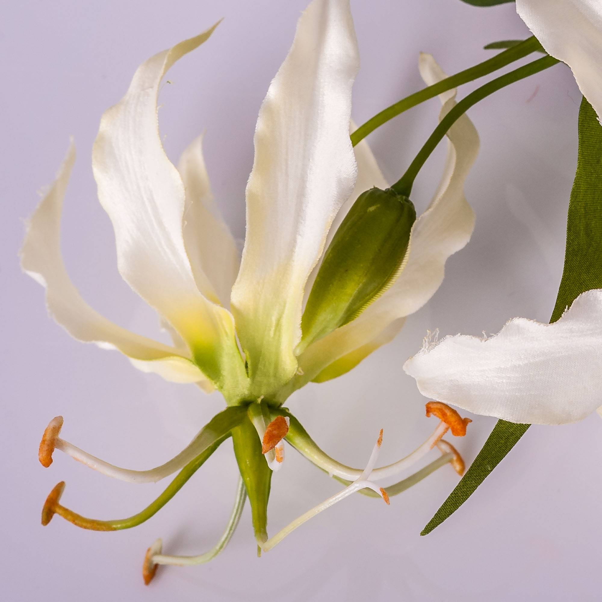 Fleur synthétique blanche d'aspect naturel - (Gloriosa superba)