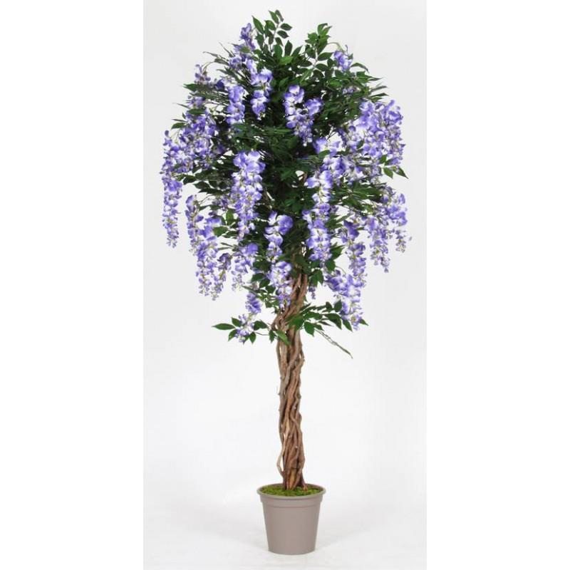 Glycine artificielle ANNIARA, troncs en bois véritable, avec des fleurs, lilas, 200cm - Made in Italy