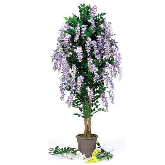 Glycine décorative MALENKA, troncs naturels, avec des fleurs, lilas, 125cm - Made in Italy