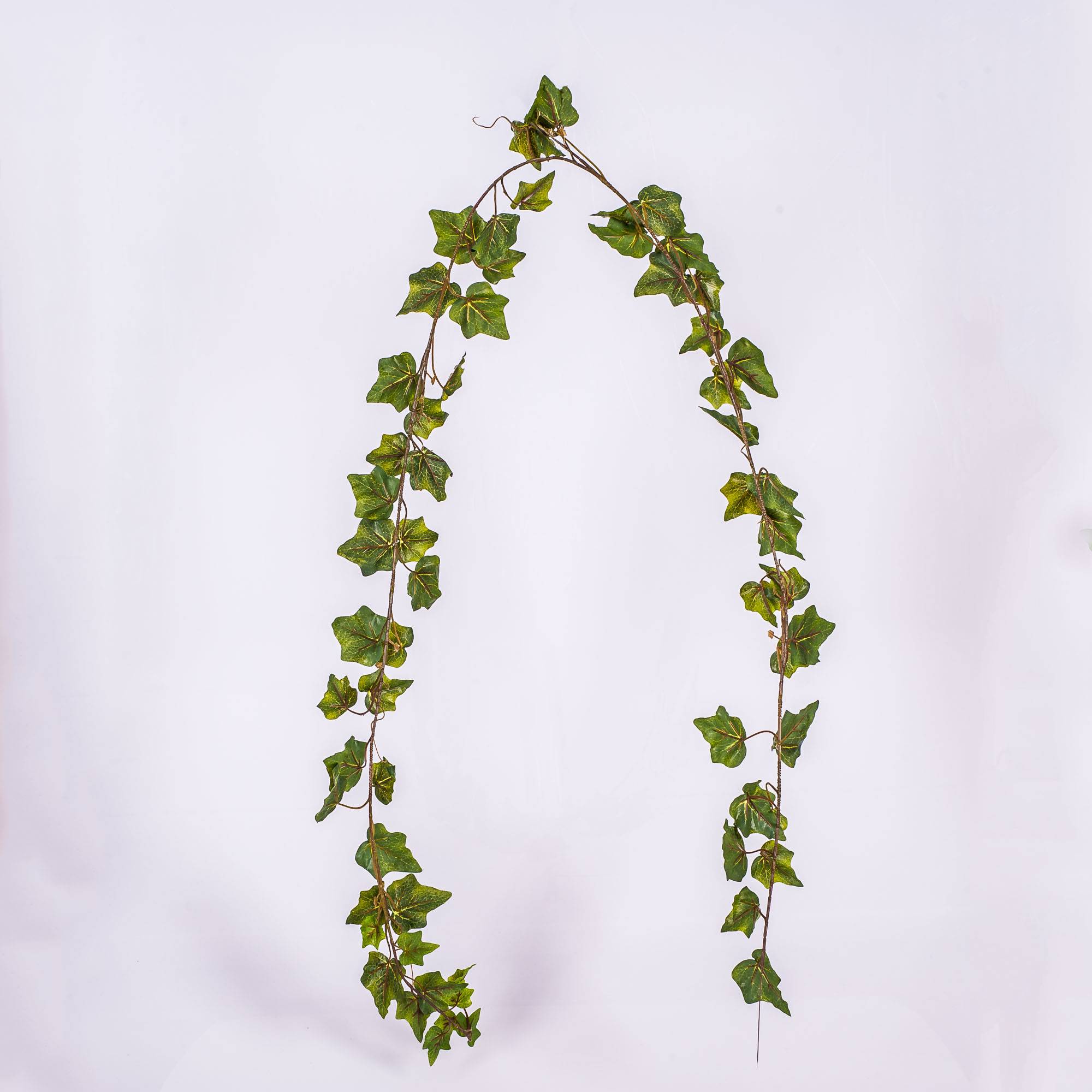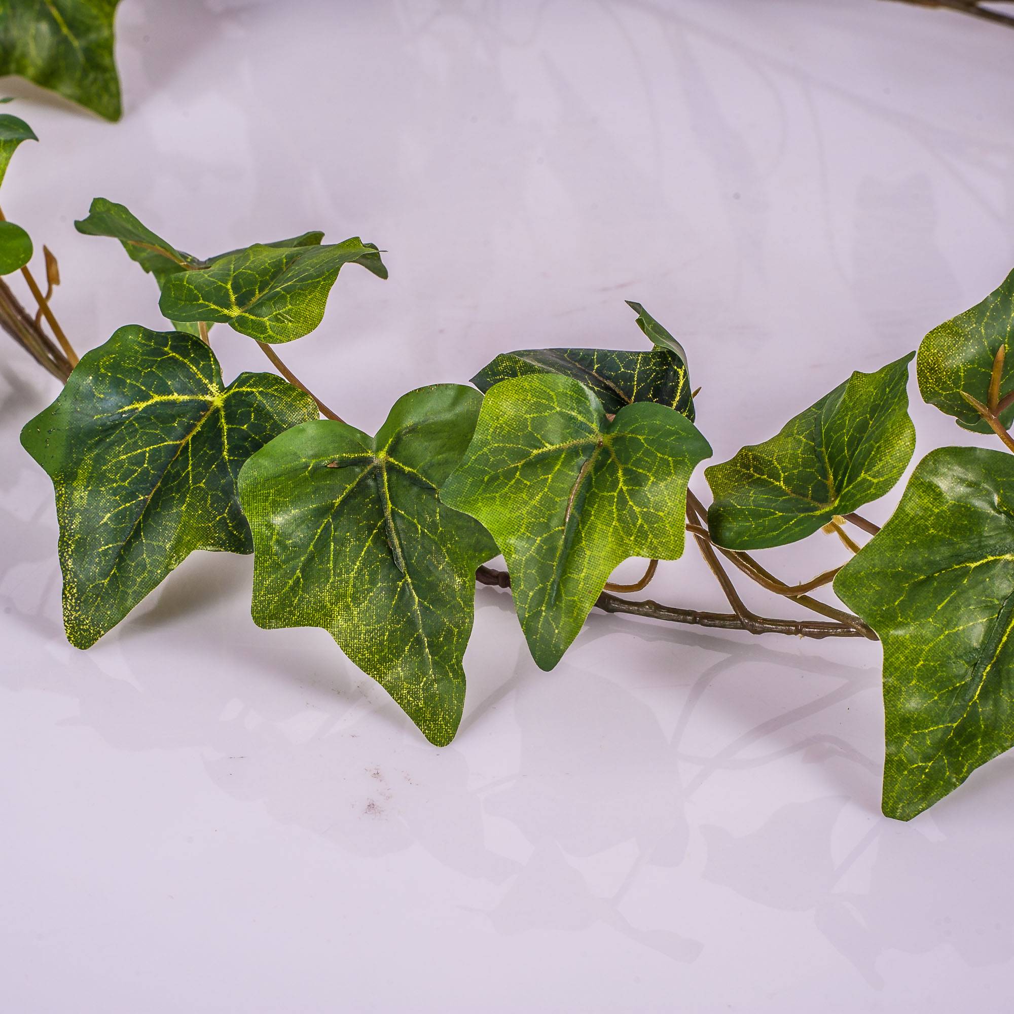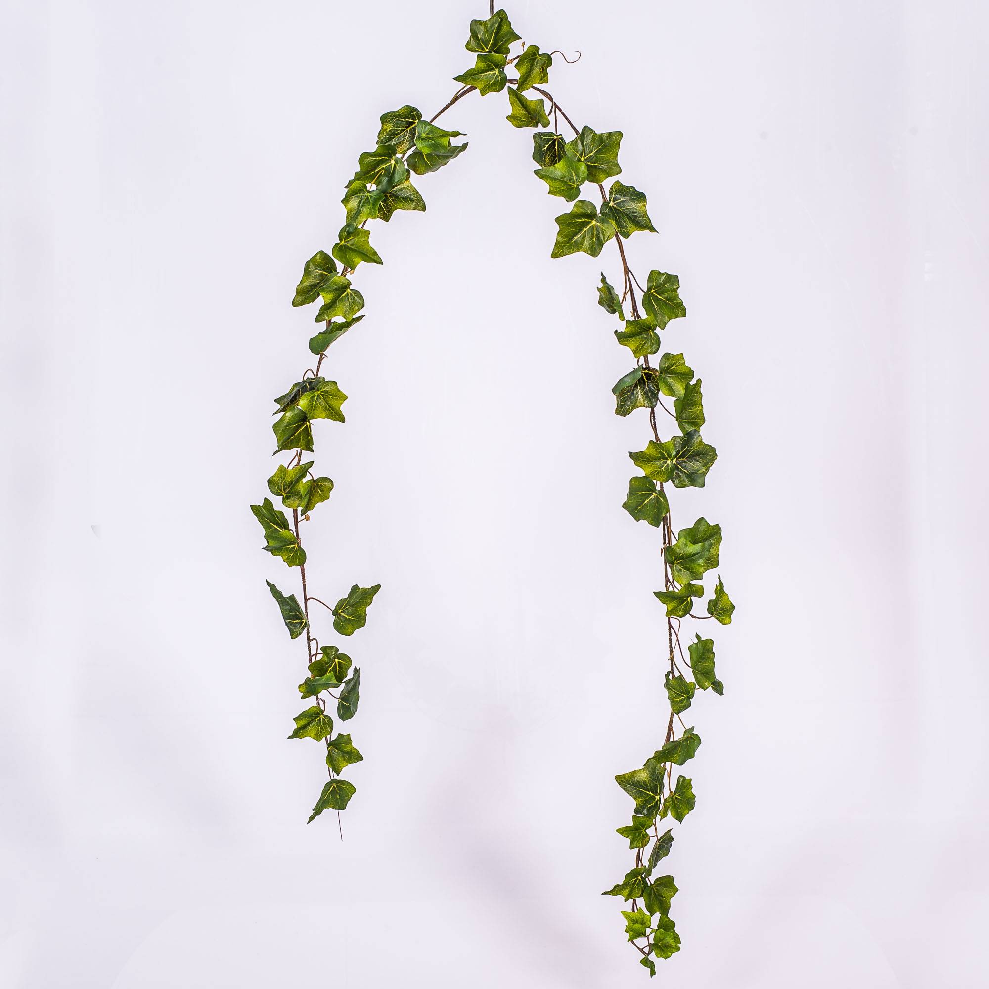 Guirlande de lierre artificielle mesurant au total environ 180 cm de long et pourvue de 65 feuilles de couleur verte. Finitions soignées, produit de qualité supérieur à l'aspect et au toucher naturel, idéal pour décorer de vitrine.