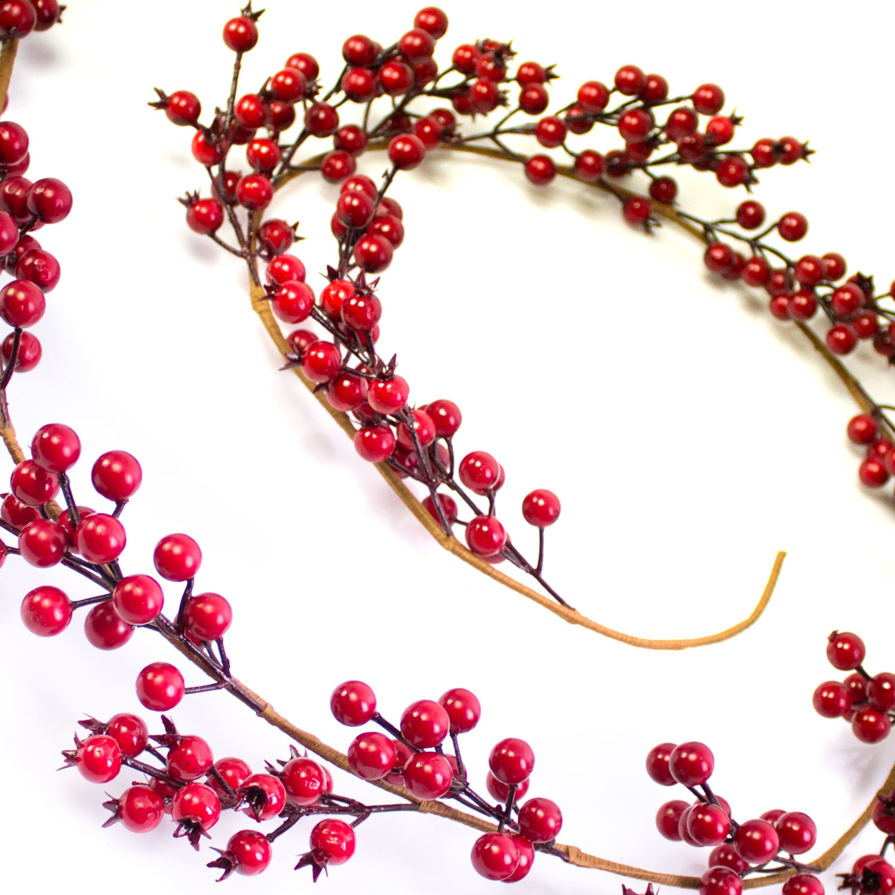 Guirlande de baies rouges, convient pour des décorations autour du thème de l'automne et de Noël. Cette guirlande artificielle mesure au total environ 180 cm de long et convient parfaitement pour vos arrangements et bouquets.
