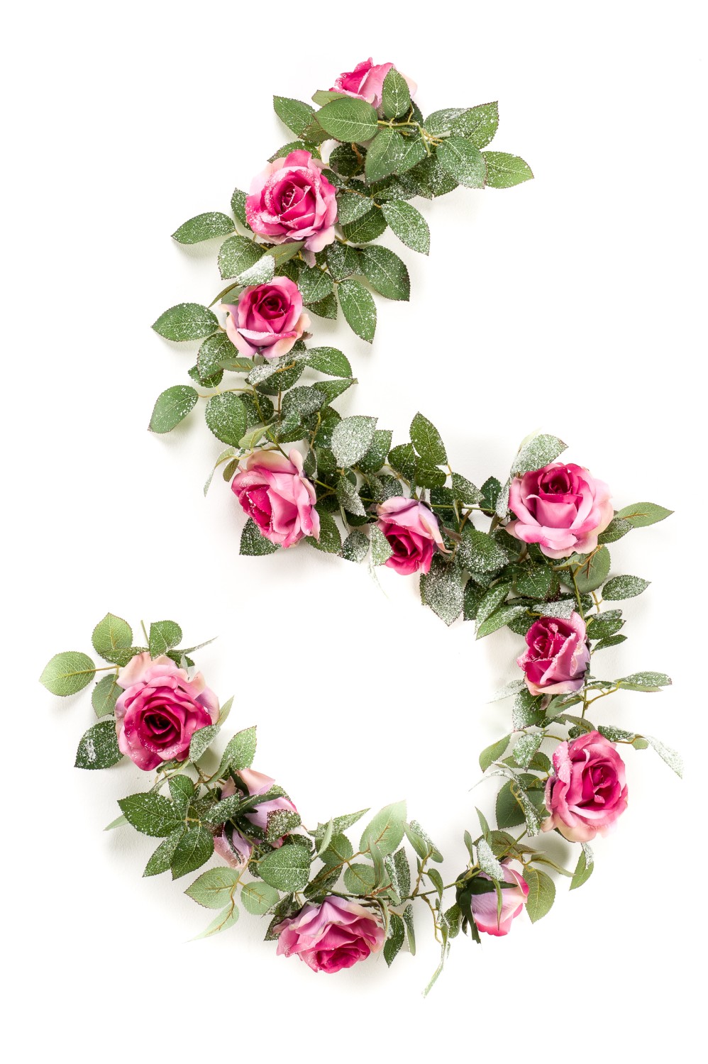 Guirlande de roses décoratives GADORA, givré, rose-fuchsia, 180cm