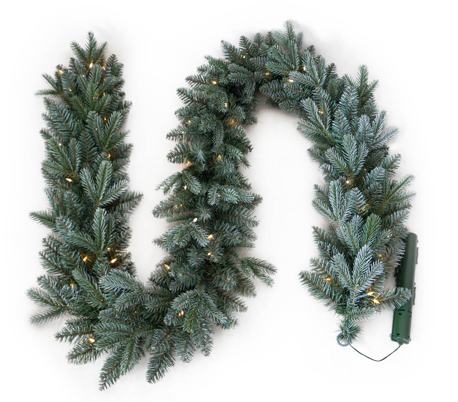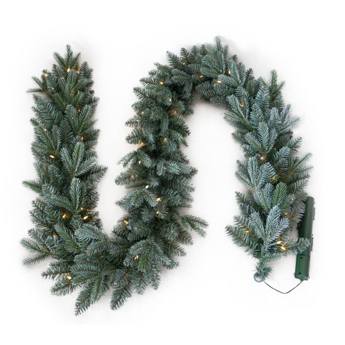 - Fausse guirlande de sapin épurée à l'aspect givré et des LEDs comme base pour une décoration personnalisée