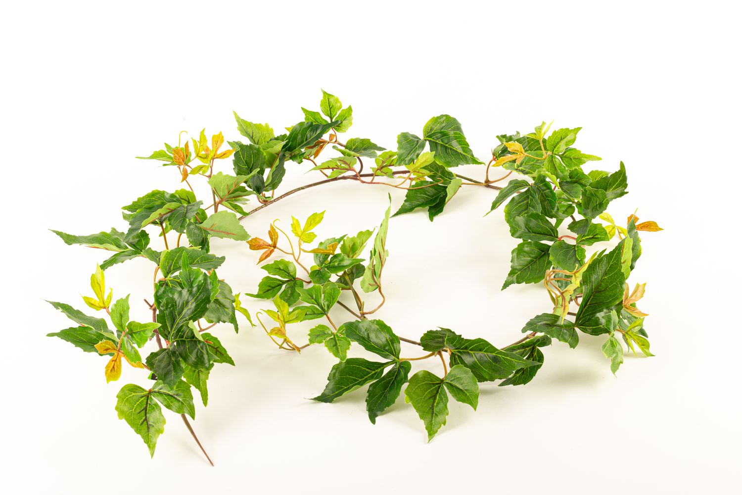 Guirlande de vigne vierge à trois pointes artificielle LEDURANA, collection écologique, vert-orange, 150cm