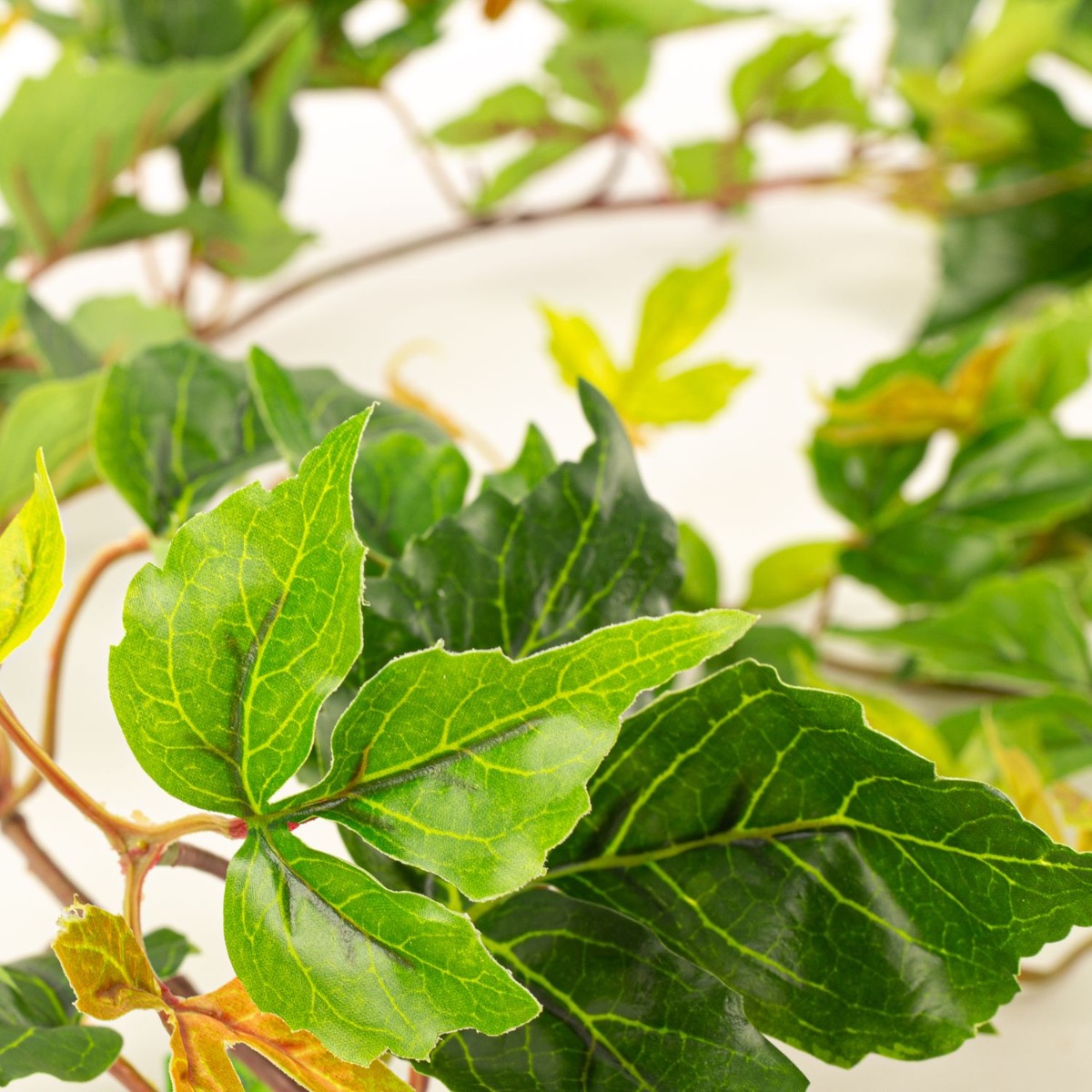 La guirlande de vigne vierge à trois pointes synthétique LEDURANA peut par ex. être enroulée autour d'une couronne, puis ajouter quelques fleurs artificielles et vous obtiendrez une belle décoration que vous pourrez fixer à la porte ou au mur.
