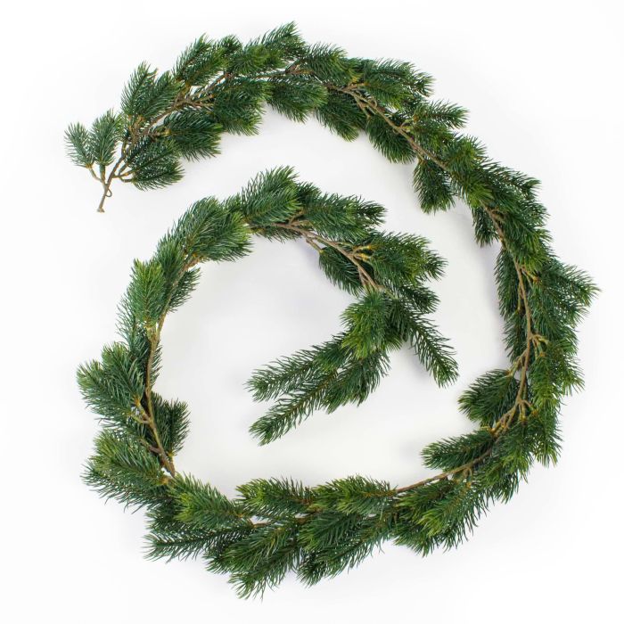 Cette guirlande de sapin synthétique mesure environ 180cm de long et sera une jolie base pour votre décoration de Noël.
