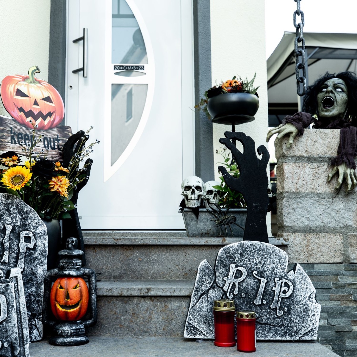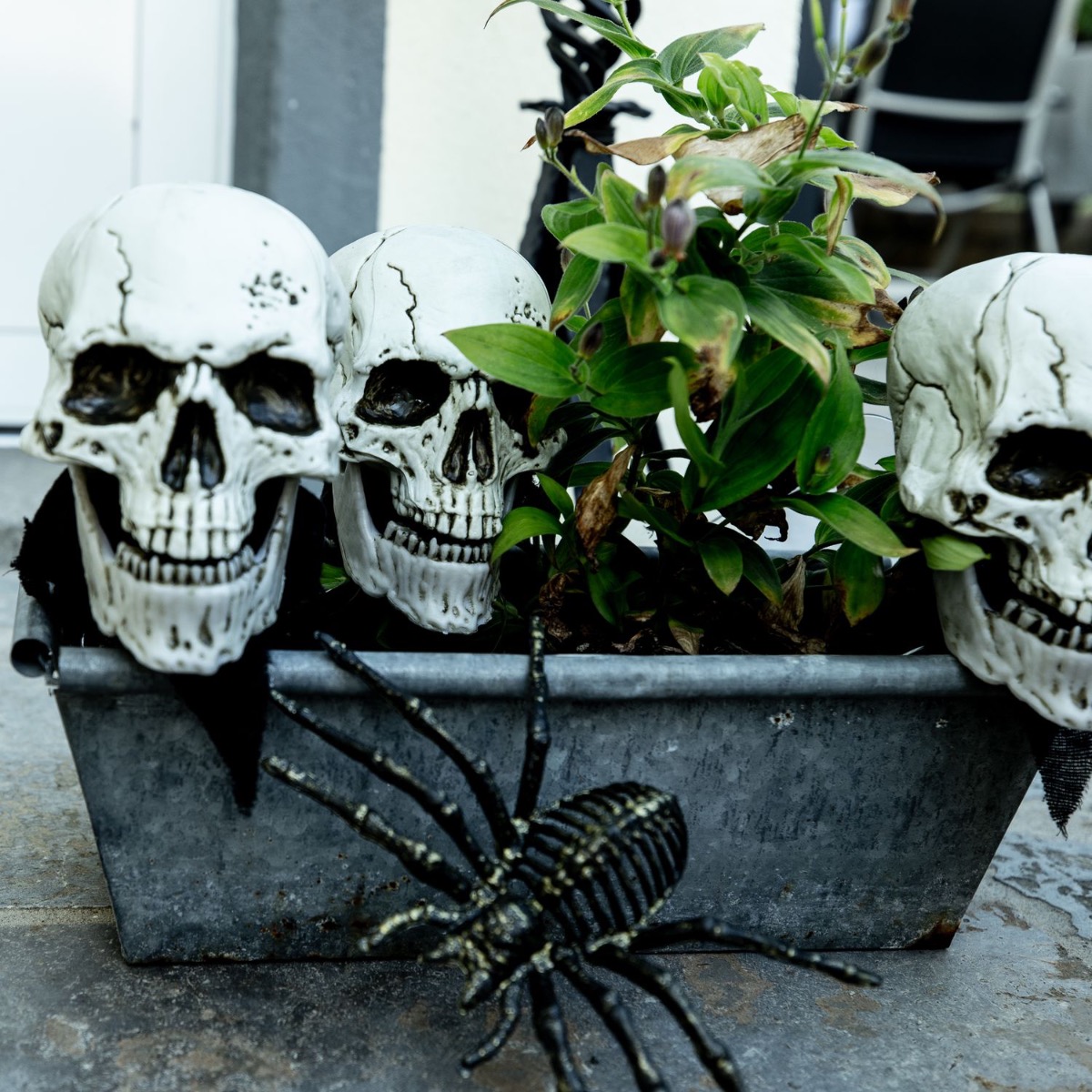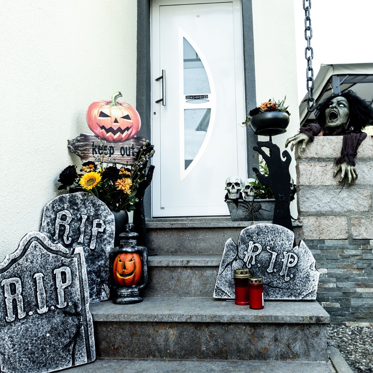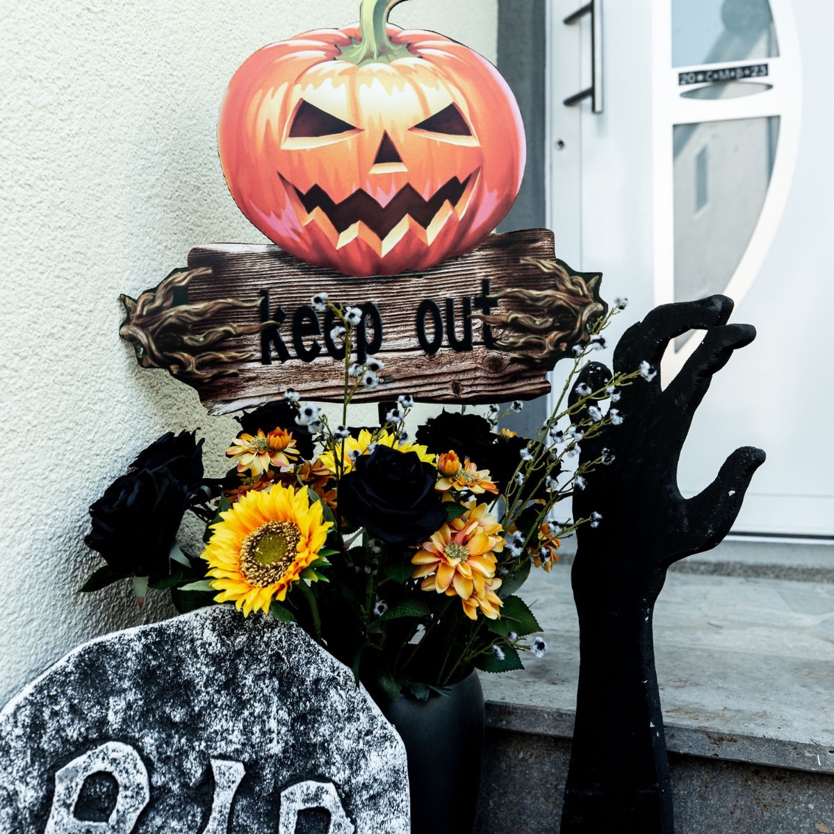Trick or Treat! Qu'y a-t-il de plus beau que des enfants hurlant et réclamant des bonbons devant la porte d'entrée. Eh bien, nous allons les dissuader en bonne et due forme. Nos pierres tombales et nos mains en polystyrène ont déjà un facteur d'épouvante vraiment élevé, mais les crânes illuminés que l'on peut mettre dans des pots de plantes sont aussi vraiment effrayants. Un bouquet de roses noires et de tournesols ne doit jamais manquer dans les looks artplants. Après tout, les fleurs embellissent même les endroits les plus effrayants. Shop the look!